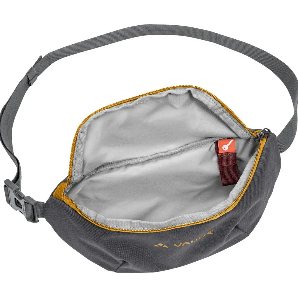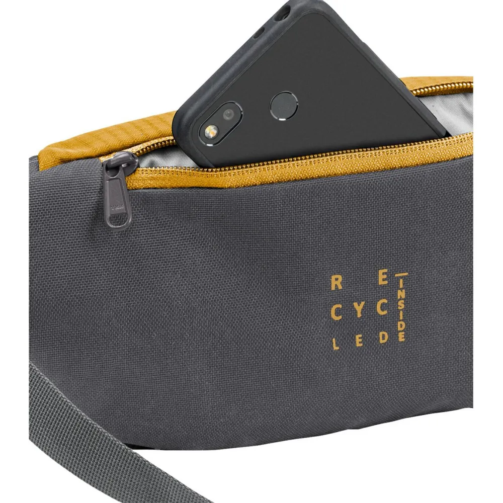 Bei 2 Liter Volumen passen in die Citymove Hüfttasche von Vaude alle wichtigen Alltagsaccessoires, wie Smartphone, Geldbeutel und Schlüssel. Mit ihrem einstellbaren Gurtband mit Steckschnalle kann die Tasche entweder am Bauch, am Rücken oder seitlich über die Schulter getragen werden. Vaude fertigt die Hüfttasche umweltfreundlich aus recyceltem Polyamid und ergänzt das große Hauptfach um ein zusätzliches Fach auf der Rückseite. Außerdem ist die Rückseite bequem gepolstert. Ein praktischer Schlüsselhalter ergänzt die hübsche Tasche im Colorblock Design.