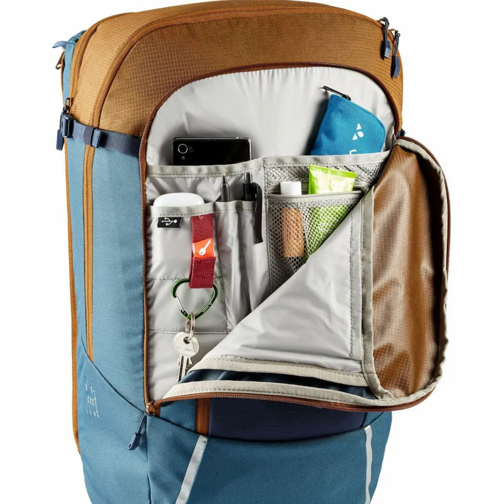Ihr Befestigungssystem für das Fahrrad lässt sich praktisch verstauen, damit Du die Tasche auch als Rucksack tragen kannst. Neben einem Laptop haben weitere Kleinigkeiten im geräumigen Hauptfach Platz. Weitere separate Taschen bieten eine übersichtliche Ordnung. Reflektierende Elemente erhöhen die Sicherheit. Bei Bedarf kannst Du ein Blinklicht zusätzlich anbringen. Mit der mitgelieferten Regenhülle wird die Tasche zuverlässig geschützt, falls es mal nass wird. Einfach durchdacht!