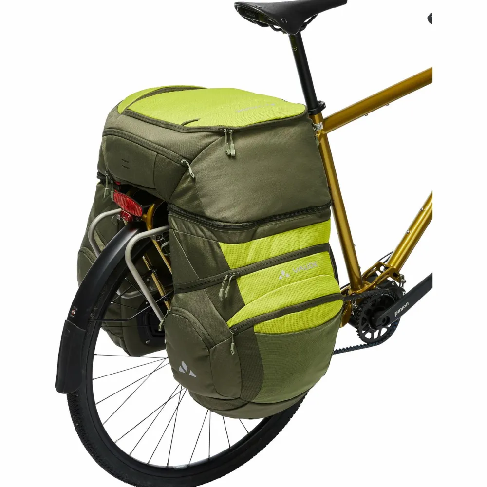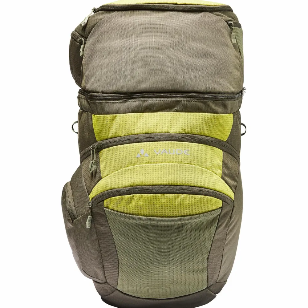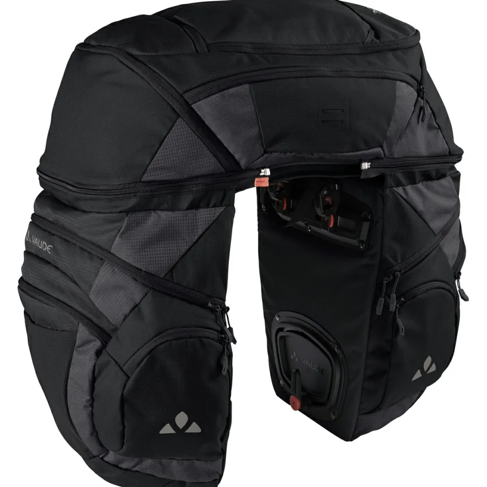 Anstatt beim Radreisen auf einzelne Hinterradtaschen zu setzen, bietet die Karakorum Pro 65 Gepäckträgertasche eine praktische Komplettlösung mit enormem Stauraum. Die Kombination aus Seitentaschen und Gepäckträgertasche ist mit 65 Liter Volumen so groß wie eine Reisetasche. Dabei lässt sich das Top Case der großen Radtasche sogar abnehmen und als praktischer Daypack für Wanderungen und Einkäufe nutzen. Die kombinierte Radtasche ist aus robustem Polyester gefertigt und wird mit einer PU-Beschichtung und einer wasser- und schmutzabweisenden Eco Finish Behandlung effizient vor Wetter und Staub geschützt. Zusätzlich verfügt die Karakorum Pro 65 über eine integrierte Regenhülle. Per QMR 2.0 Befestigungssystem wird die Gepäckträgertasche am Gepäckträger fixiert. Diverse Zusatzfächer, eine praktische Helmhalterung und gut sichtbare Reflektoren komplettieren die großen Taschen für ausgedehnte Radtouren und Bike-Expeditionen.