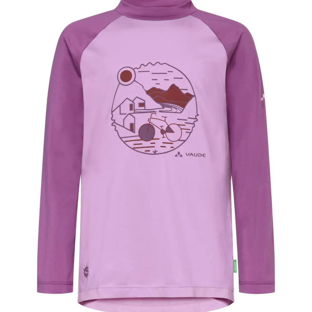 Das Kid’s Solaro L/S T-Shirt III von Vaude ist ein Funktionsshirt mit einem angenehmen Materialmix aus recyceltem Polyester und Elasthan. Das Gewebe ist elastisch und pflegeleicht und eignet sich für den Schulalltag genauso, wie für die Freizeit und den Sport. Sein hoher UV-Schutzfaktor ist auch für die Berge ausreichend und wird ohne Chemikalien, allein durch Faserauswahl, Webart und Dicke des Materials erreicht.
