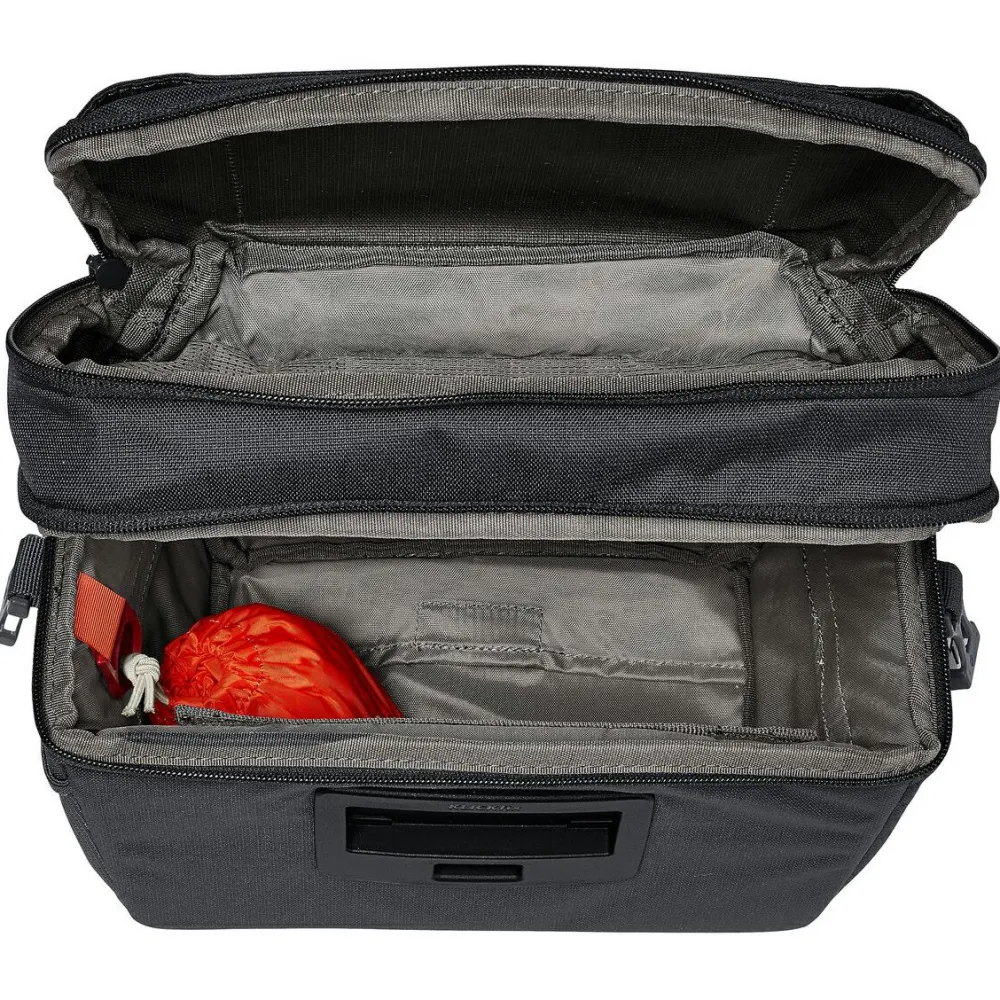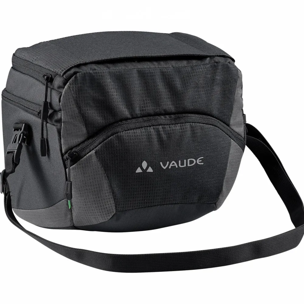 Per Klickfix Befestigungssystem kann die OnTour Box L Lenkertasche von Vaude sicher und bequem am Fahrradlenker fixiert werden. Die robuste Tasche bietet 6 Liter Stauraum und lässt sich mit dem abnehmbaren Schultergurt auch im Alltag sehr vielseitig einsetzen. Neben dem großen Hauptfach verfügt die OnTour Box L über ein praktisches Deckelfach und eine extra Fronttasche. Dank PU-Beschichtung, Eco Finish Oberflächenbehandlung und integrierter Regenhülle ist die Vaude Lenkertasche auch für Radtouren bei Nässe und Staub bestens ausgerüstet.