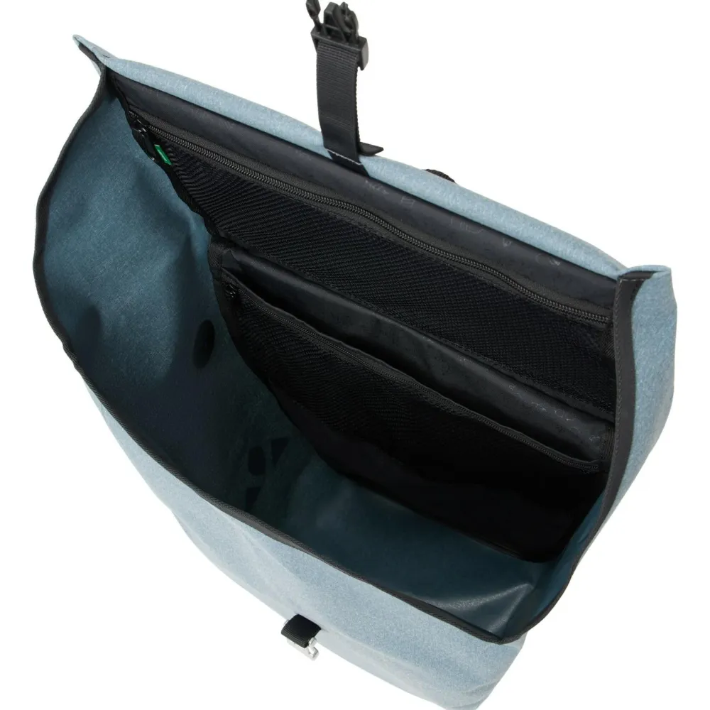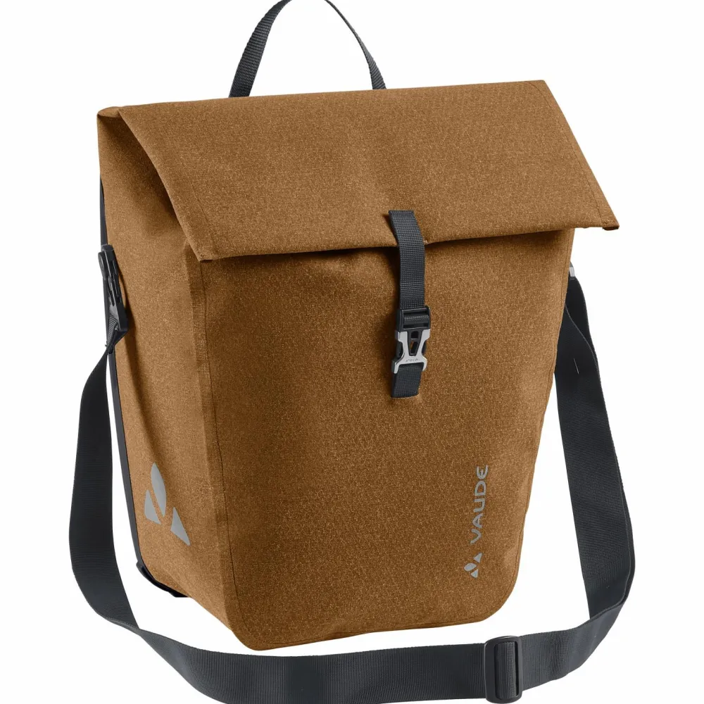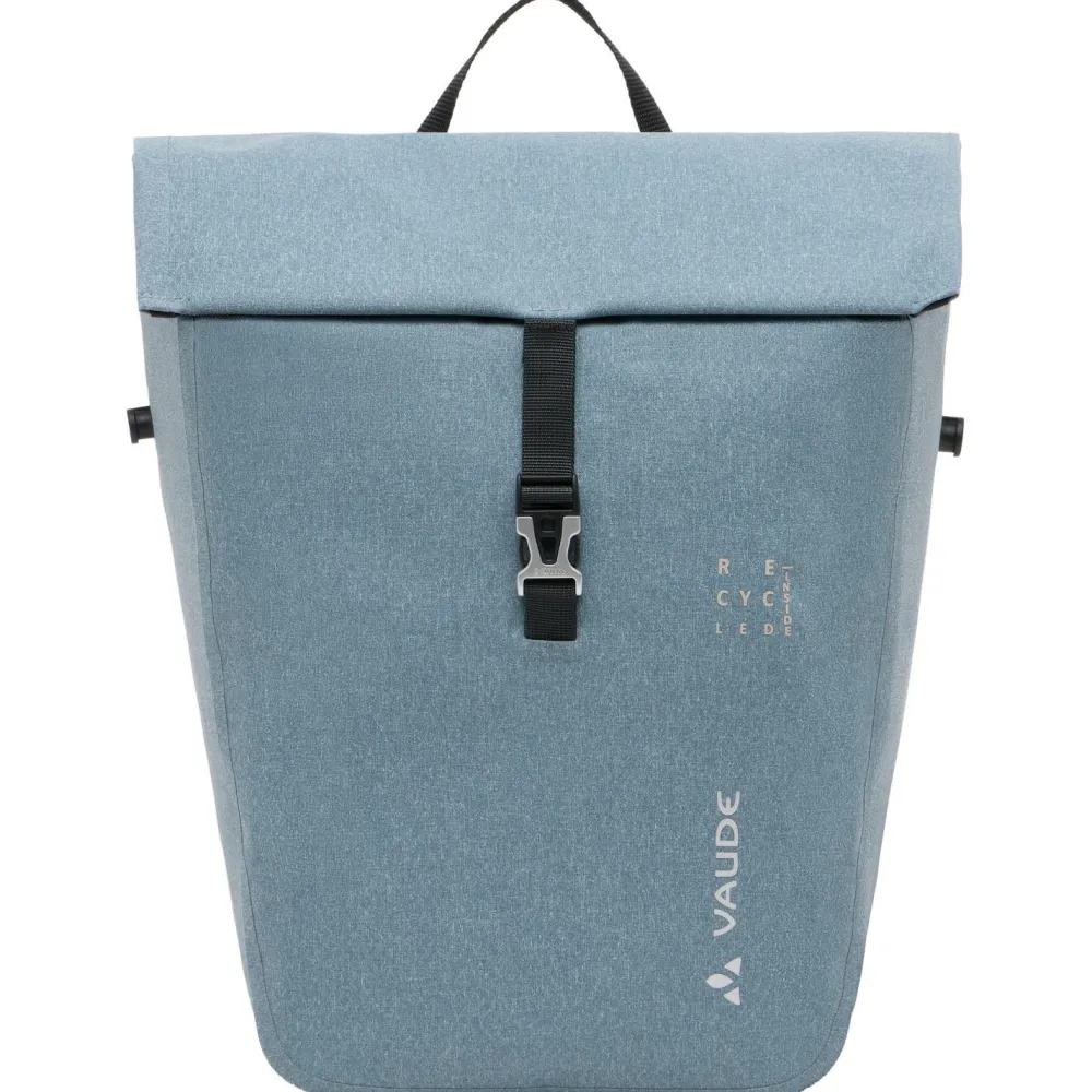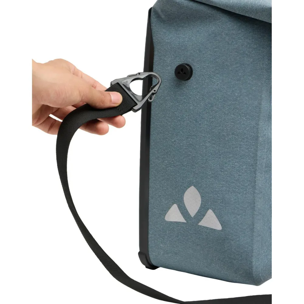 Die ReCycle Pro Single 18 ist mit einem Hartschalen-Taschenrücken ausgestattet, der der Tasche eine hohe Stabilität verleiht. Außerdem lässt sie sich mithilfe der integrierten Schnellbefestigungshaken QMR 2.0 leicht vom Gepäckträger lösen, aber auch direkt mit einem Schloss (nicht im Lieferumfang enthalten!) am Fahrrad absperren. Mithilfe des abnehmbaren, verstellbaren Schultergurtes kannst Du die Tasche überall mit hintragen. Dabei verhindert die rotierende Befestigung des Gurtes ein Abkippen. Egal wohin Du unterwegs bist – die ReCycle Pro Single 18 von Vaude bietet Dir viel zusätzlichen Stauraum am Bike. Das robuste und wasserdichte Außenmaterial schützt den Tascheninhalt zuverlässig vor Regen und Spritzwasser. Neben dem großen Hauptfach steht Dir eine kleinere Reißverschlusstasche für Wertsachen oder andere Kleinigkeiten zur Verfügung.