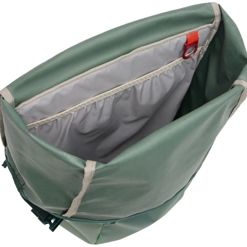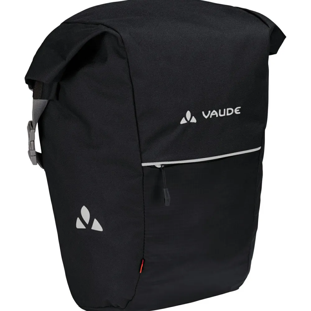 Die Road Master Roll-It von Vaude ist eine erweiterbare Gepäckträgertasche mit Rolltop-Verschluss und übersichtlichem Hauptfach. Die vielseitig-flexible Fahrradtasche ist aus überwiegend recyceltem, PVC-freiem Material hergestellt und eignet sich fürs berufliche Pendeln genauso wie für die Freizeit. Ihr Soft Back 2.0 Rücken kommt ohne Kunststoffplatte aus und sorgt so für eine ressourcenschonende Herstellung. Weitere Vorteile sind das deutlich reduzierte Gewicht am Fahrrad und die Flexibilität beim Anbringen an den Gepäckträger. Letzteres geschieht mithilfe des leicht einstellbaren und abschließbaren QMR 2.0 Befestigungssystem, das auf runde Gepäckträgerrohre mit Durchmessern von 8-16 mm passt. Die maximale Beladung pro Tasche beträgt 10 Kilo.
