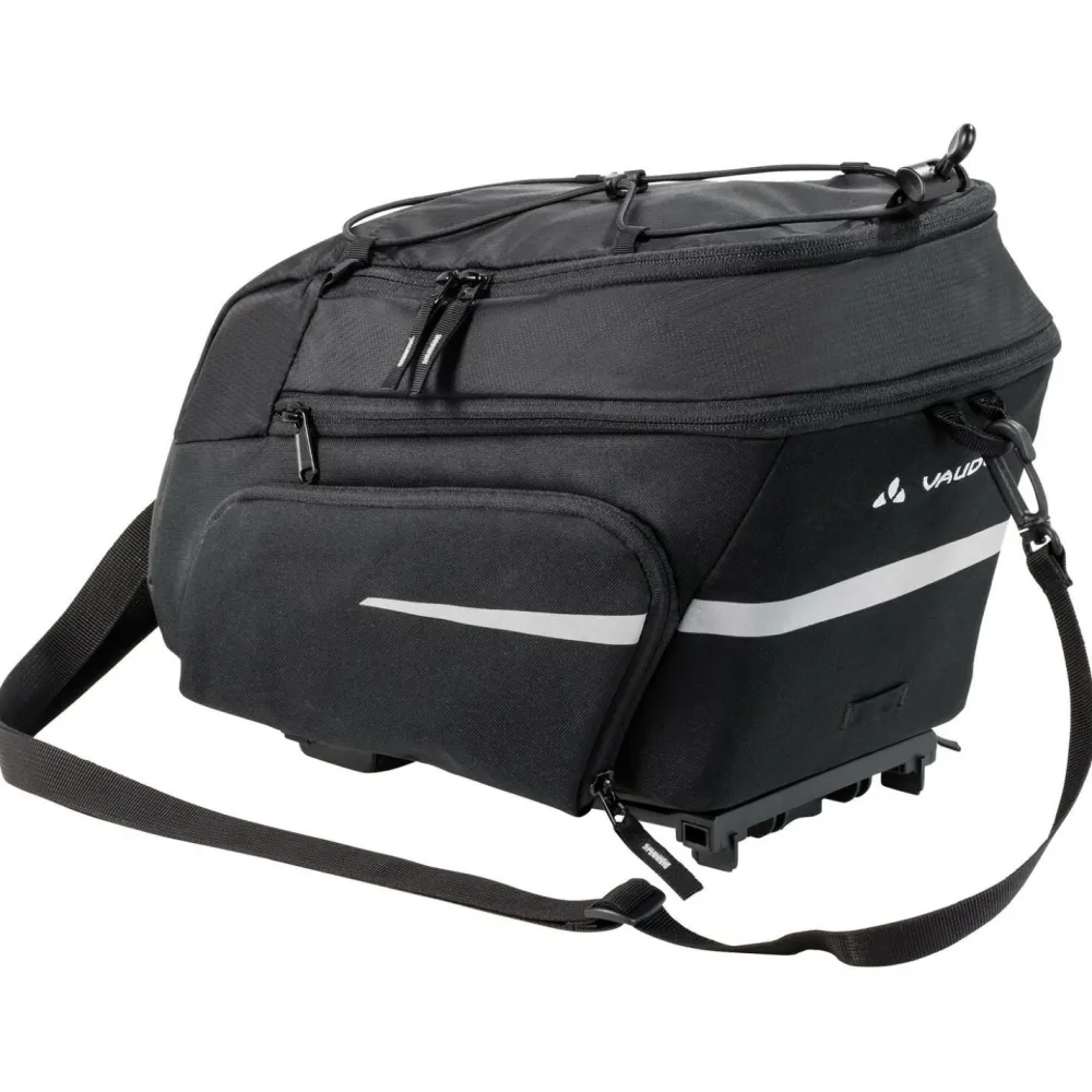 Radfahrer können in der Gepäckträgertasche Silkroad Plus UniKlip 16 von Vaude ihr Gepäck praktisch verstauen! Die robuste Tasche lässt sich unkompliziert am Gepäckträger befestigen oder bei Bedarf mit einem verstellbaren Schulterträger transportieren. Mit dabei ist eine Regenhülle, die die Tasche vor Nässe und Schmutz schützt. Damit eine übersichtliche Ordnung herrscht, gibt es neben einem großen Hauptfach, kleine Seitentaschen. Ein Gummizug am Deckel ist praktisch für die Befestigung von Jacken. Für ausgedehnte Radtouren ist die Silkroad ein kompetenter Partner!