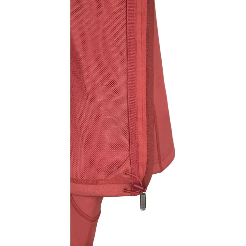 Das leicht melierte Fleece besteht aus hautfreundlichem, größtenteils recyceltem Polyester und zeichnet sich durch eine gute Elastizität aus. Auf der Innenseite ist das Material angeraut und fühlt sich angenehm weich an. Das verleiht der Fleecejacke einen hohen Tragekomfort und verbessert die Wärmeleistung zusätzlich. Der körpernah geschnittene Schnitt sorgt zudem für viel Bewegungsfreiheit und ist ideal für sportliche Aktivitäten. Kurzum: der perfekte Allrounder für alle Outdoor-Sportlerinnen.