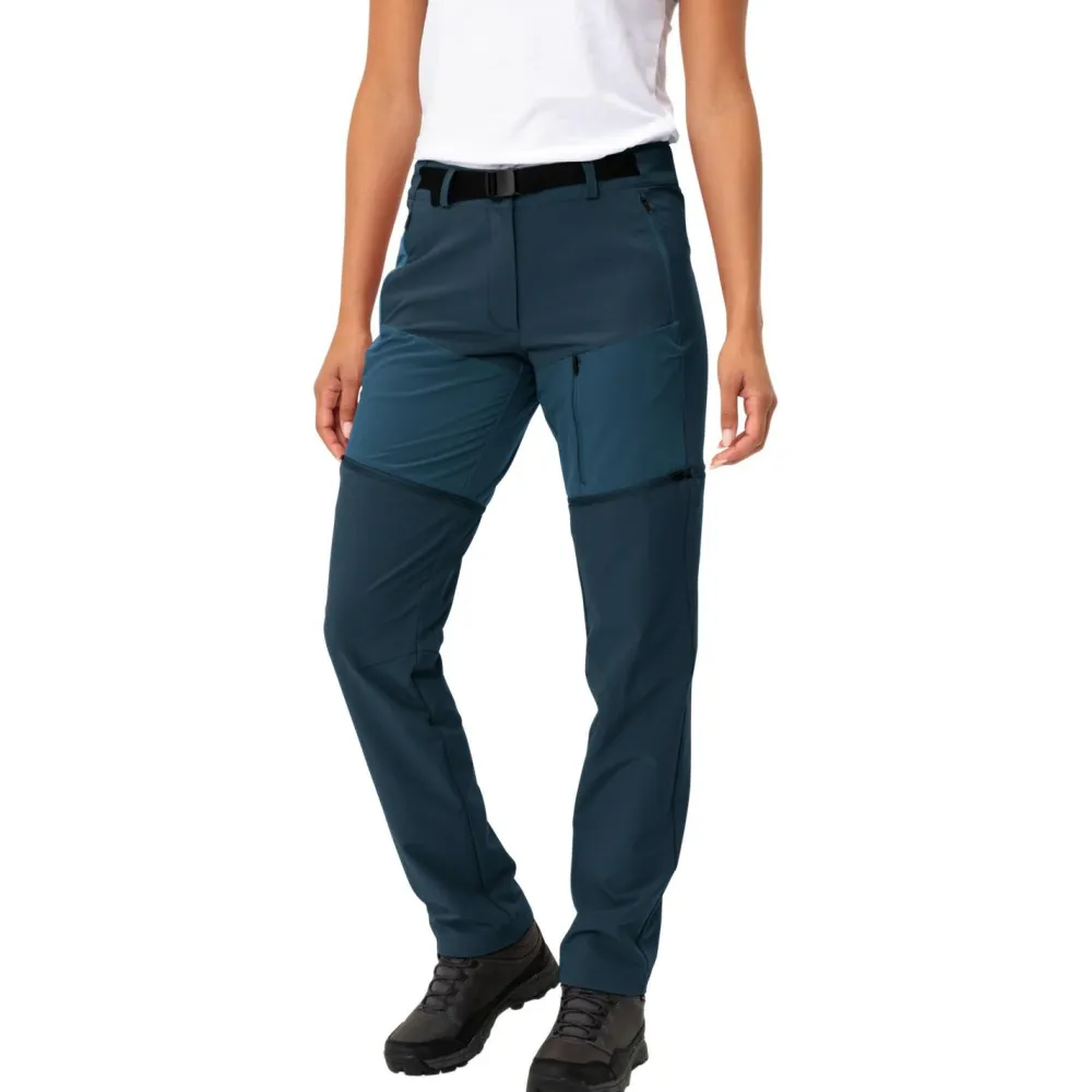 Vaude stattet die stretchy Wanderhose mit zwei Fronttaschen und einer Tasche am Bein aus. Per Reißverschluss lassen sich alle Taschen sicher verschließen. Ein wasserabweisende Eco Finish Behandlung macht die sportliche Tourenhose komplett.