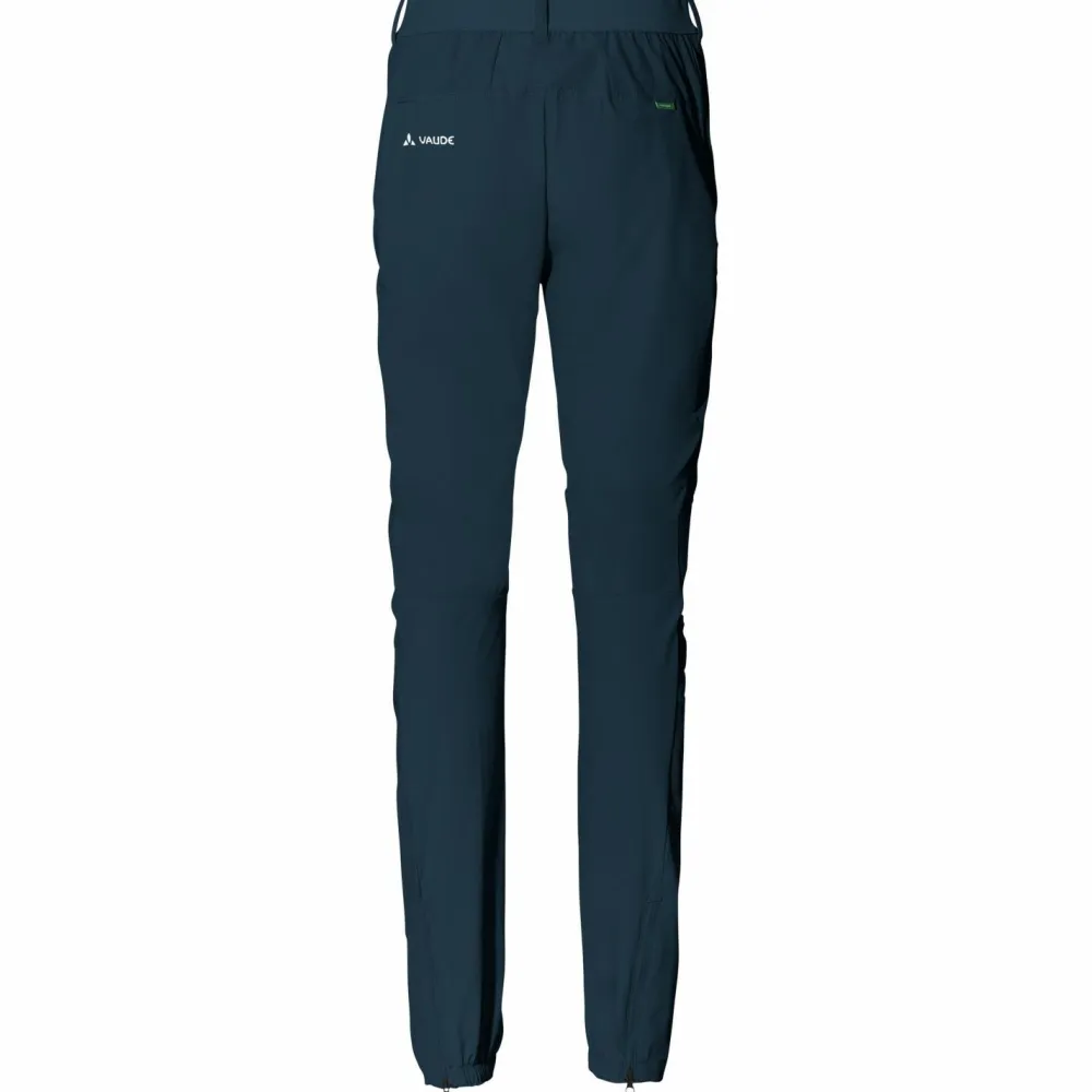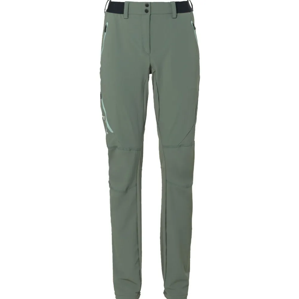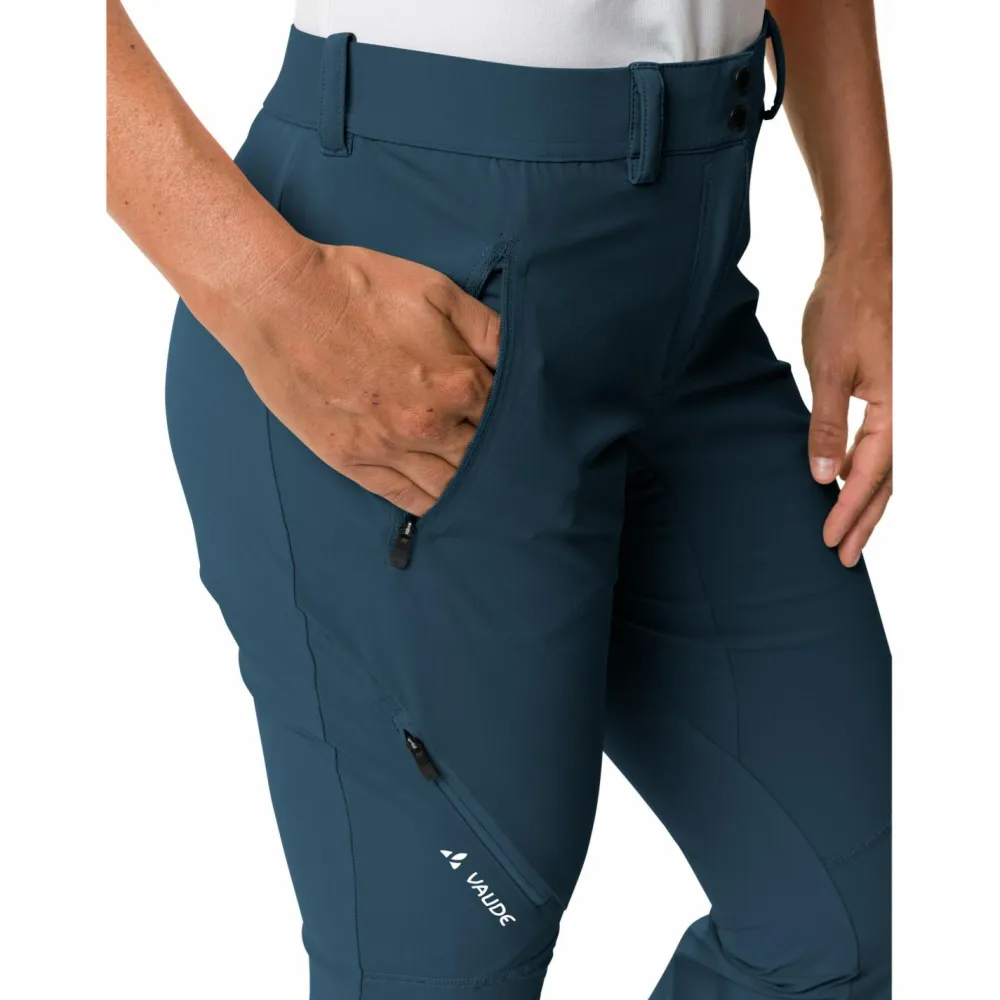 Körpernah geschnitten und extrem bewegungsfreundlich bietet sich die Women’s Scopi Pants II Trekkinghose für sportliche Bergtouren und anspruchsvolle Wanderungen an. Sie besteht aus einer leichten Materialmischung aus strapazierfähigem Polyamid und dehnbarem Elasthan. Das Gewebe gewährleistet mit einer Winddichtigkeit von etwa 80% eine super Kombination aus angenehmer Belüftung und gutem Windschutz. Zudem ist die Oberfläche der Trekkinghose mit einer wasserabweisenden Eco Finish Behandlung versehen. Die Kniepartien der Vaude Hose sind ergonomisch vorgeformt und erweiterbare Beinabschlüsse mit Reißverschluss erleichtern das An- und Ausziehen mit Wanderstiefeln oder Bergschuhen. Ein teilelastischer Bund, zwei Fronttaschen und eine zusätzliche Tasche am Oberschenkel ergänzen die funktionelle Outdoorhose.