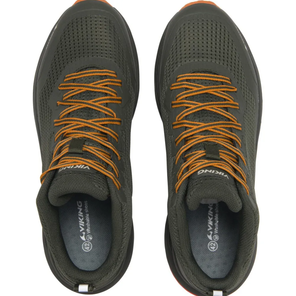 Dank der leichten EVA-Zwischensohle genießt Du optimale Dämpfung, auch wenn der Weg mal länger wird. Die robuste Außensohle aus Gummi-Mix gibt Dir Halt auf unterschiedlichstem Untergrund – von nassem Asphalt bis hin zu weichen Waldpfaden. Innen sorgt die Airflow-Einlegesohle für ein frisches Tragegefühl. Und nach dem Einsatz? Den Schuh einfach bei 30 °C in der Maschine waschbar.