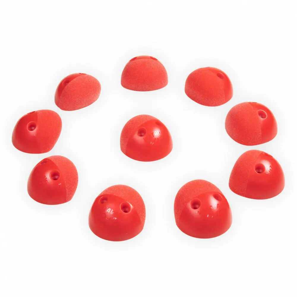 Die Dojo 7 Klettergriffe von Wataaah kommen im 10er Set in kleiner Größe. Sie bestehen aus Polyurethan, sind an der Unterseite glatt und an der Oberseite angeraut. Durch die angeraute Oberfläche gibt es auch einen guten Grip. Ein absolutes Muss für jede Kletter- und Boulderhalle. Die Dojo 7 Klettergriffe sind sowohl für die Vertikale als auch für den Überhang gut geeignet.