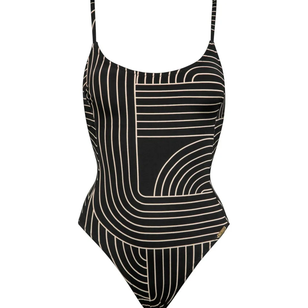 Der Women’s Line Set Swimsuit No. 8350 von Watercult eignet sich für Deinen Sommer zwischen Strand und Pool, wenn Du einen modernen Look mit starkem Ausdruck suchst. Er ist atmungsaktiv, schnelltrocknend und stretchy. Aus weichem Material gefertigt, liegt er angenehm auf der Haut und begleitet Dich komfortabel durch aktive und entspannte Momente. Der futuristische All-over-Print in Schwarz und Weiß verleiht dem Design eine coole, progressive Ausstrahlung und macht den Badeanzug zum echten Statement.