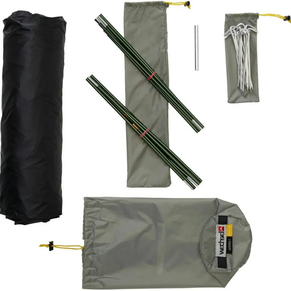 Beim Aurora 1 von Wechsel handelt es sich um ein relativ leichtes 1-Personen-Tunnelzelt, das man auf Trekkingtouren, auf Radtouren oder zum Campen einpacken kann. Das Material des Zeltes ist aus robustem Polyestergewebe, das für Langlebigkeit des Zeltes sorgt. Das Außenzelt und der Boden sind PU-beschichtet, damit man einen zuverlässigen Schutz vor eindringender Nässe und Regen hat. Außerdem ist das Zelt atmungsaktiv, damit sich nicht zuviel Kondenswasser über Nacht im Zelt bilden kann und die Feuchtigkeit besser nach außen entweichen kann. Ist das Innenzelt mal eingehängt, dann ist das Zelt schnell aufgebaut, da die einzelnen Stangen durchlaufend sind. Das Innenzelt hat eine maximale Raumhöhe von 93 cm und bietet zusammen mit der Apside und der Innentasche genügend Stauraum für Gepäck und Ausrüstung. Praktisch, zuverlässig und robust – mit diesem Zelt im Gepäck kann die nächste Tour losgehen!