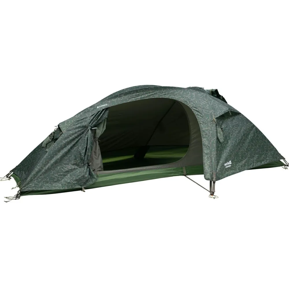 Das Pathfinder Elements von Wechsel ist ein gut getarnter Begleiter für Solo-Abenteuer in der Natur! Beim Pathfinder Elements handelt es sich um ein kompaktes Kuppelzelt für eine Person, das über ein freistehendes Design verfügt und somit auf vielen verschiedenen Böden einsetzbar ist. Das PU-beschichtete Außenzelt aus reißfestem Ripstop-Polyester bietet nicht nur optimalen Schutz vor den Elementen, sondern fügt sich dank Hexagon-Tarnmuster nahtlos in die Umgebung ein. Der PU-beschichtete Zeltboden besteht aus langlebigem Polyester und bietet mit seiner Wassersäule von 7.000 mm zuverlässigen Schutz vor eindringender Feuchtigkeit. Das leichte Aluminiumgestänge verleiht dem Zelt die nötige Stabilität und ist mit farblichen Markierungen versehen, die einen schnellen und unkomplizierten Aufbau ermöglichen.