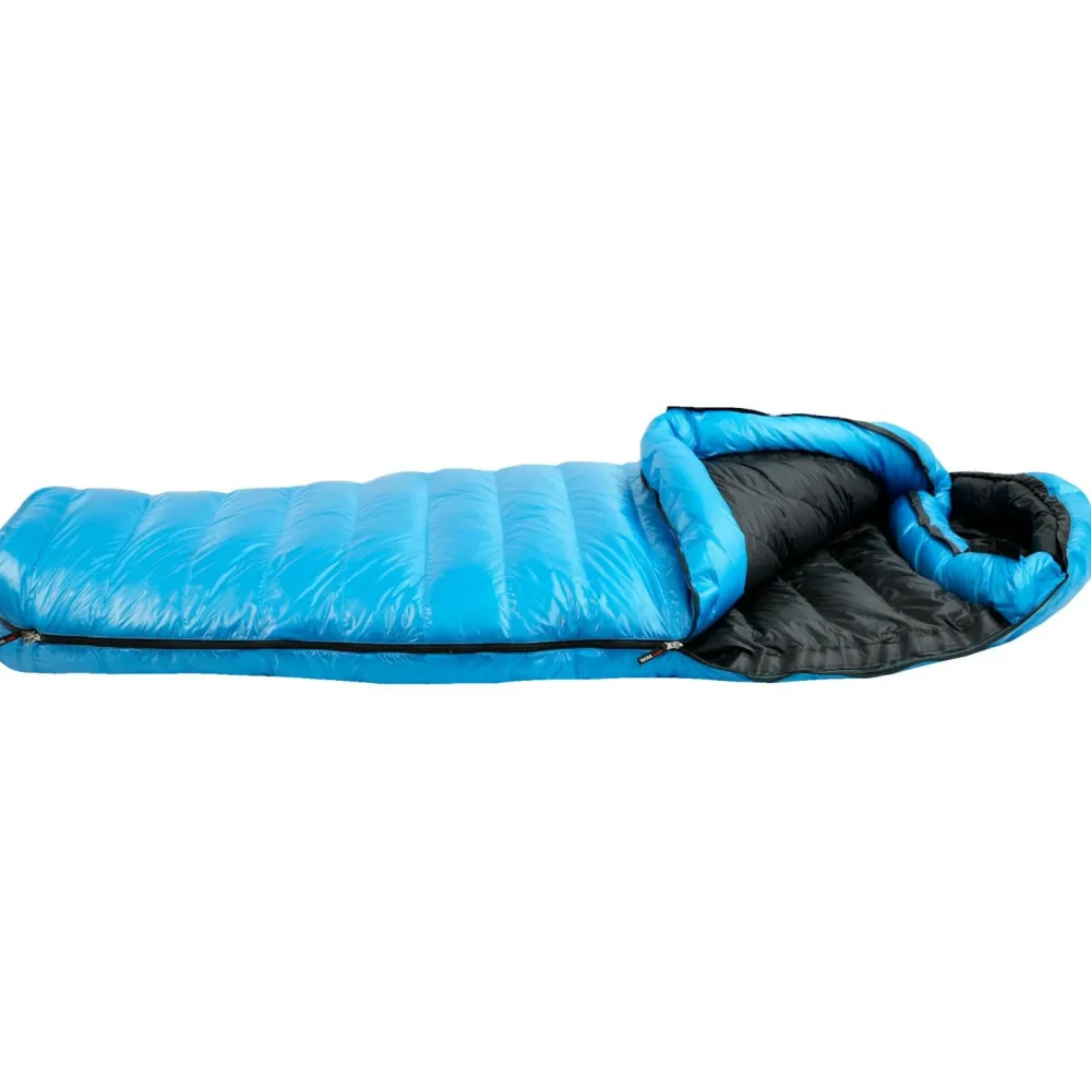 Das Außenmaterial aus 12-Denier-Ripstop-Nylon ist extrem leicht, atmungsaktiv und wasserabweisend. Der durchgehende Zwei-Wege-Reißverschluss macht Einstieg und Belüftung einfach und ermöglicht es Dir, den Schlafsack komplett zu öffnen. So kannst Du ihn bei milderen Temperaturen als Decke nutzen. Mitgeliefert werden ein ultraleichter Packsack für unterwegs und ein Netzbeutel zur Lagerung.