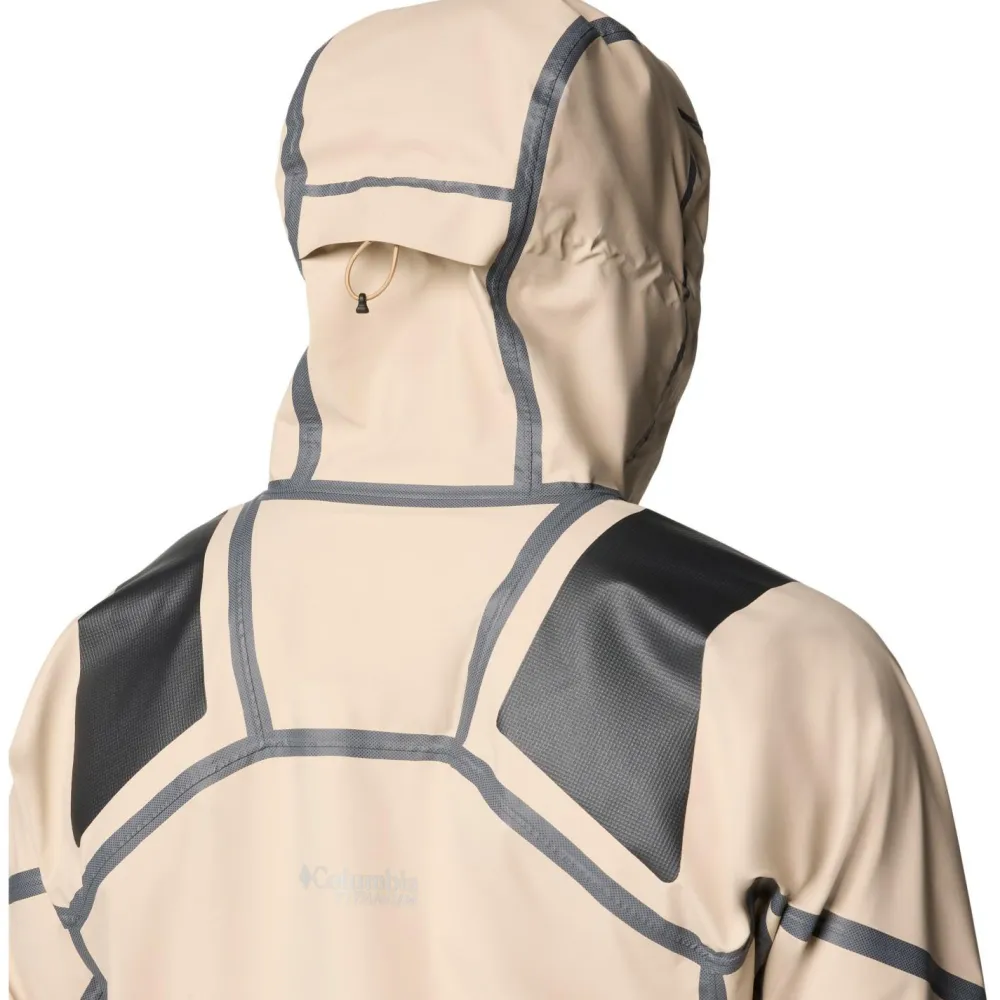 Columbia verstärkt die Whistler Peak Shell Regenjacke mit PU-Overlays im Schulterbereich und an der Hüfte. Dadurch eignet sich die Jacke perfekt für Touren mit viel Gepäck und schweren Rucksäcken. Die Verstärkungen unterstützen dabei das Gewebe und garantieren besonders guten Nässe- und Abriebschutz. Eine verstellbare Kapuze, einstellbare Bündchen und eine verlängerte Rückenpartie ergänzen die funktionelle Ausstattung der Outdoorjacke. Mit ihren reflektierenden Details ist die Jacke auch bei Dunkelheit gut zu erkennen.