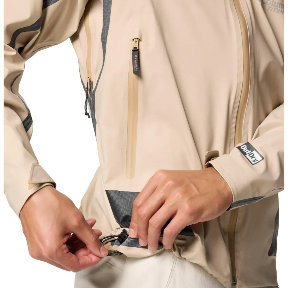 Mit ihrem strapazierfähigen OutDry Extreme Laminat ist die Whistler Peak Shell Regenjacke von Columbia besonders wetterfest. Das Funktionsgewebe ist wasserdicht, windundurchlässig und atmungsaktiv. Zusätzlich schützen die versiegelten Nähte auch bei intensiver Nässe und kräftigem Regen. Für besonders gute Ventilation bei anstrengenden Touren verfügt die Hardshelljacke über zwei praktische Zwei-Wege-Reißverschlüsse unter den Armen.