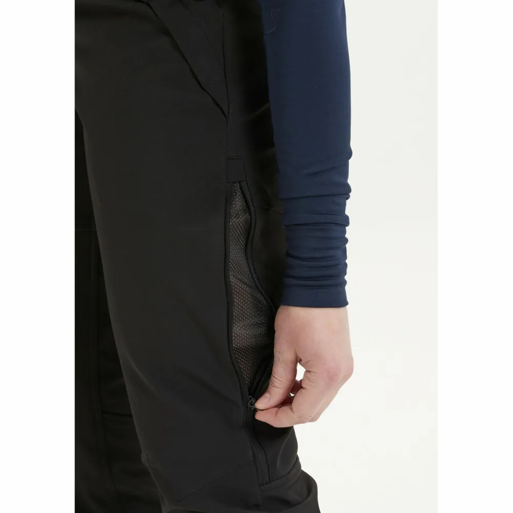Der Hüftbund lässt sich mit zwei Klettverschlüssen stufenlos in der Weite anpassen. Neben den beiden Fronttaschen befindet sich noch eine Beintasche am rechten Oberschenkel. Alle drei Taschen sind mit Reißverschlüssen ausgestattet, weshalb der Inhalt auch bei technischen Touren sicher verstaut ist.
