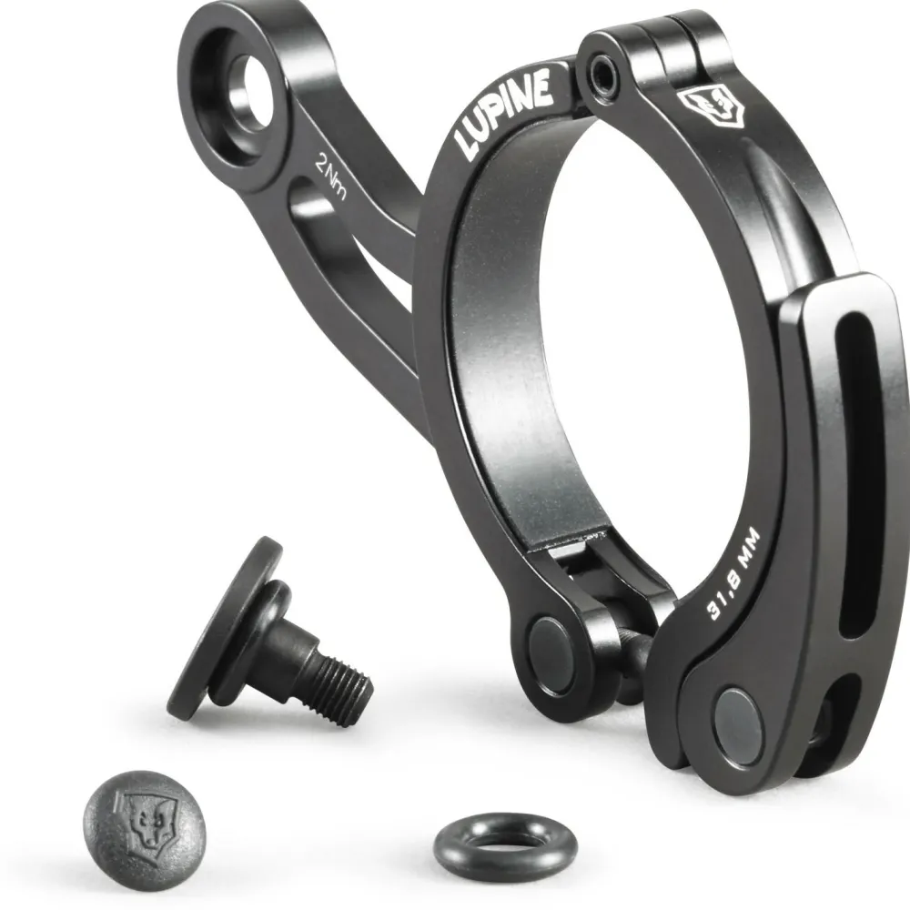 Der Wilma Schnallspanner ist ein Lampenhalter von Lupine. CNC-gefräst für Rohre mit einem Durchmesser von 25,4mm.