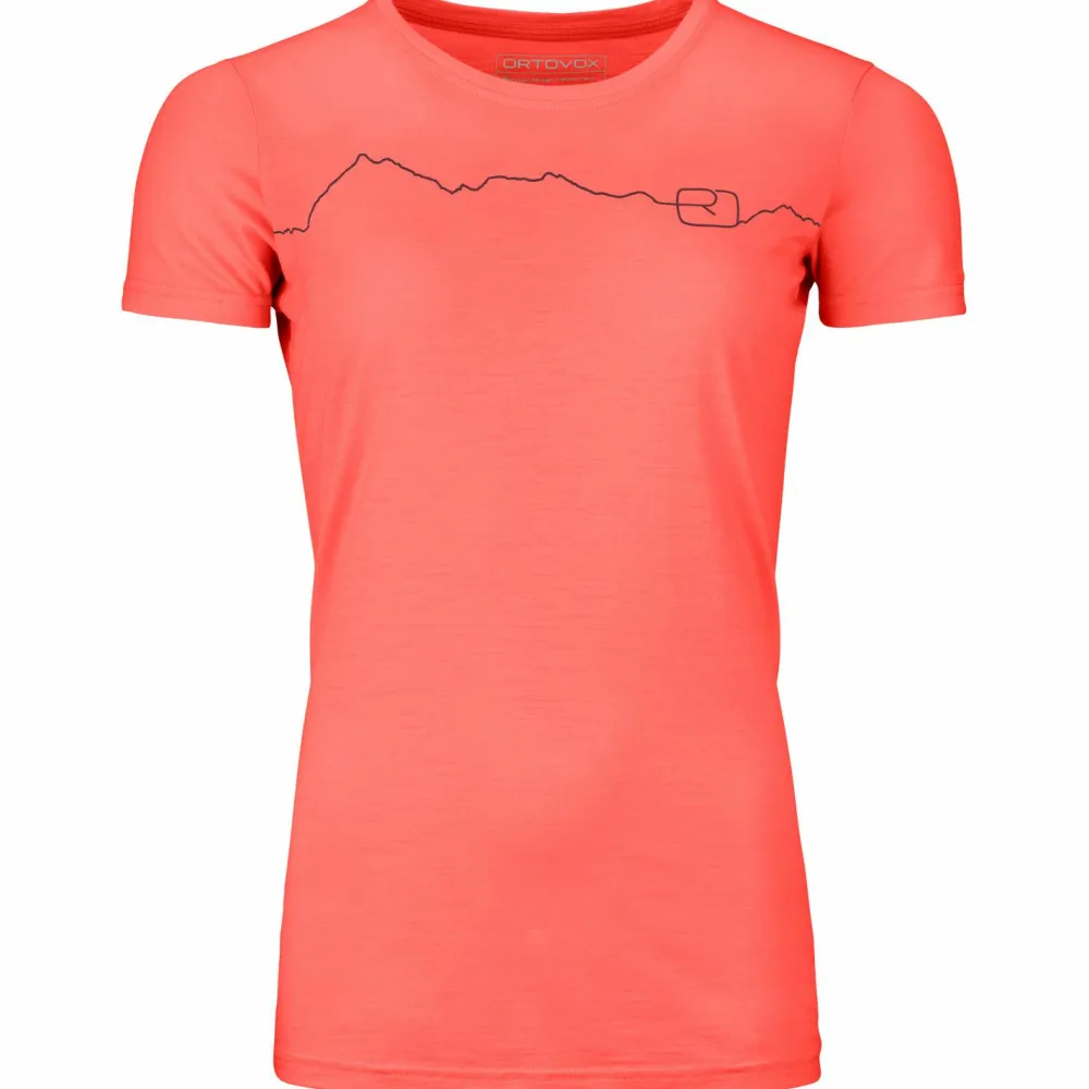 Das Women’s 150 Cool Mountain T-Shirt von Ortovox macht optisch einiges her. Der moderne, aber dennoch zeitlose Aufdruck auf der Brust macht es zu einem Hingucker.