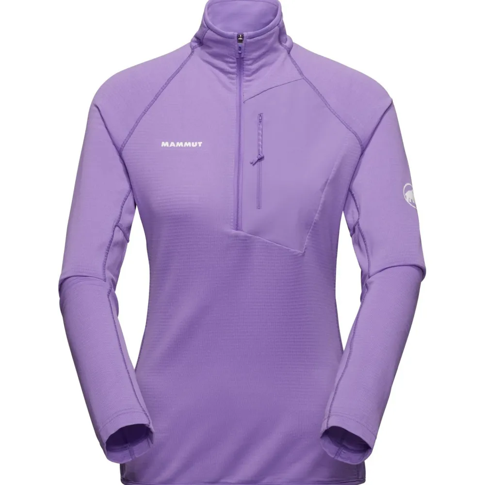 Die Women’s Aenergy Light Midlayer Half Zip Pull Kunstfaserjacke von Mammut überzeugt mit funktionalen Eigenschaften für sportliche Einsätze in den Bergen. Schnelltrocknende und atmungsaktive Fasern verhindern, dass es zu unangenehm feuchten Bedingungen im Innern der Jacke kommt. Bei niedrigen Temperaturen kannst Du Dich auf eine tolle Wärmeleistung verlassen. Zudem sind elastische Fasern integriert, die eine optimale Bewegungsfreiheit unterstützen.