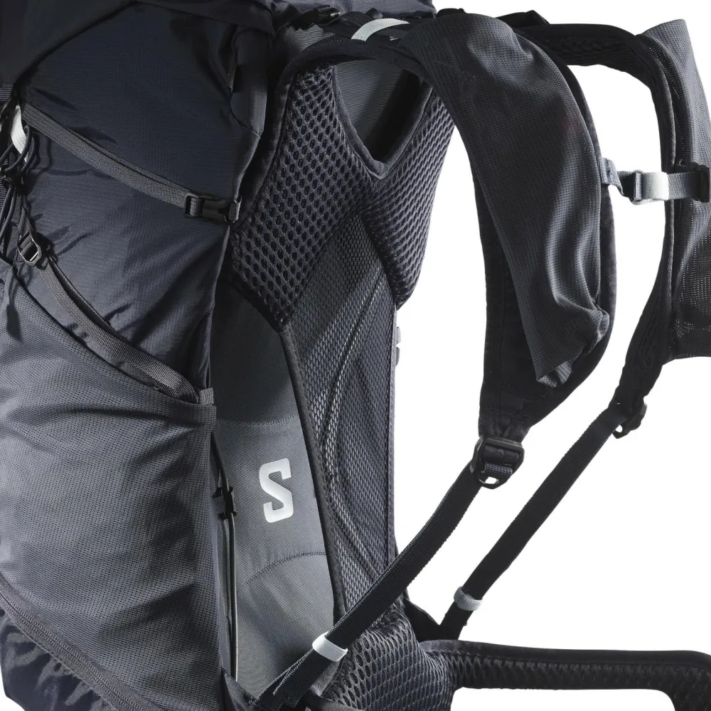 Der kompakte Women’s Aerotrek 38 Wanderrucksack von Salomon hat mit seinen 38 Litern Fassungsvermögen genügend Stauraum, um Dich auf 2-3 tägigen Trekkingtouren zu begleiten.Er überzeugt mit seinem Netzrückensystem, das dafür sorgt, dass Dein Rücken stets gut abtrocknen kann, und mit der gepolsterten Unterstützung an Deiner Lendenwirbelsäule. Zusammen mit dem verstellbaren, auf Frauenkörper angepassten Hüft- und Brustgurt wird so größtmöglicher Komfort und Stabilität geschaffen.Für die optimale Lastverteilung kannst Du die seitlichen Kompressionsriemen und die Lastkontrollriemen an den Schulterträgern individuell einstellen.