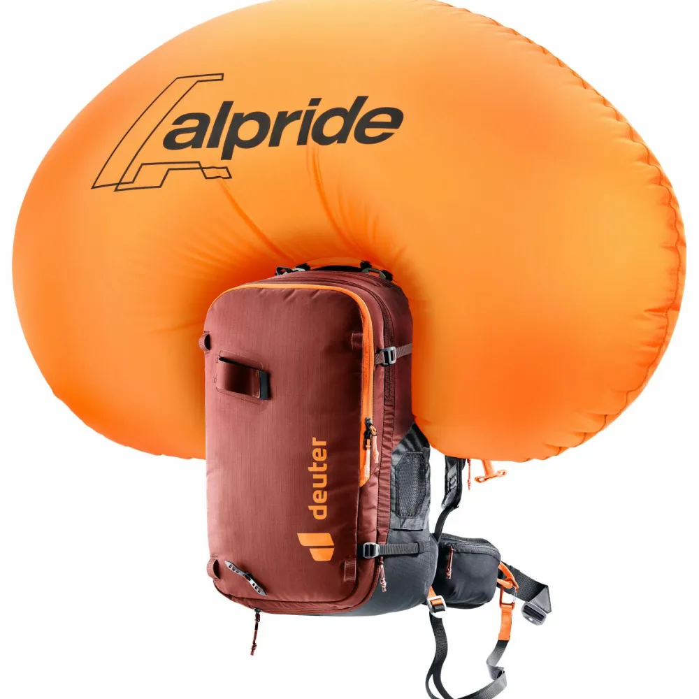 Der Women’s Alproof 30 SL Lawinenrucksack von deuter eignet sich ideal für anspruchsvolle Skitouren im Gelände sowie zum Freeriden. Das vollelektronische Alpride E2 Airbag System überzeugt mit einer schnellen Auslösung und einfacher Handhabung. Seitliche angebrachte und von außen sichtbare Status-LEDs sorgen jederzeit für den optimalen Überblick. Die Beinschlaufe verhindert im Verschüttungsfall das Abziehen des Tourenrucksacks. Der höhenverstellbare Auslösegriff für den Lawinen-Airbag lässt sich links oder rechts anbringen. Durch integrierte Taschen am Hüftgurt und Materialschlaufen sind wichtige Ausrüstungsgegenstände wie Eisschrauben unterwegs rasch zur Hand.