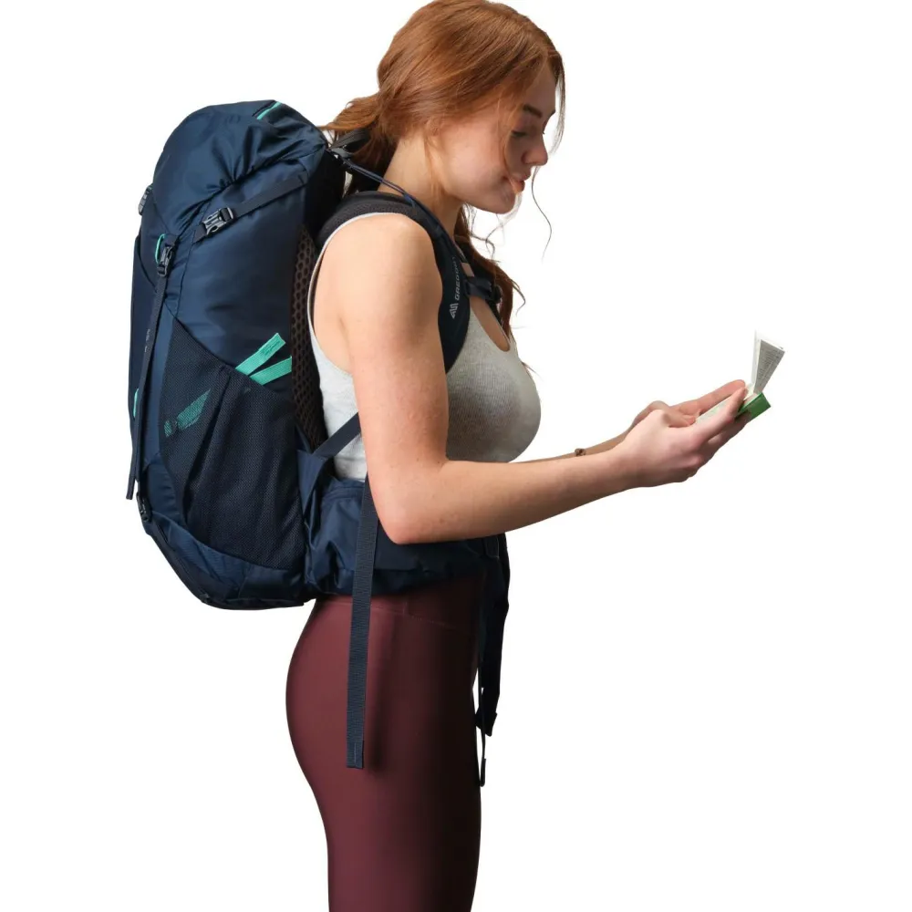 Mit seinen 34 Litern Fassungsvermögen ist der Women’s Amber 34 RC von Gregory für Wochenendtouren ein idealer Partner. Dieser Wanderrucksack bringt alles mit, was Dir das Leben unterwegs leichter macht. Bei diesem Modell kannst Du die Rückenlänge anpassen. Hierdurch sitzt der Rucksack sowohl bei kleineren, als auch bei größeren Personen gut.