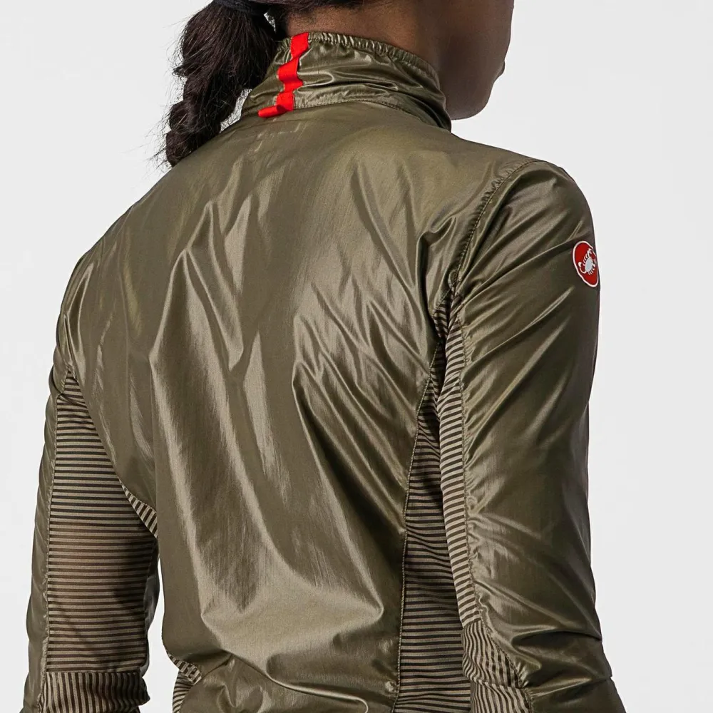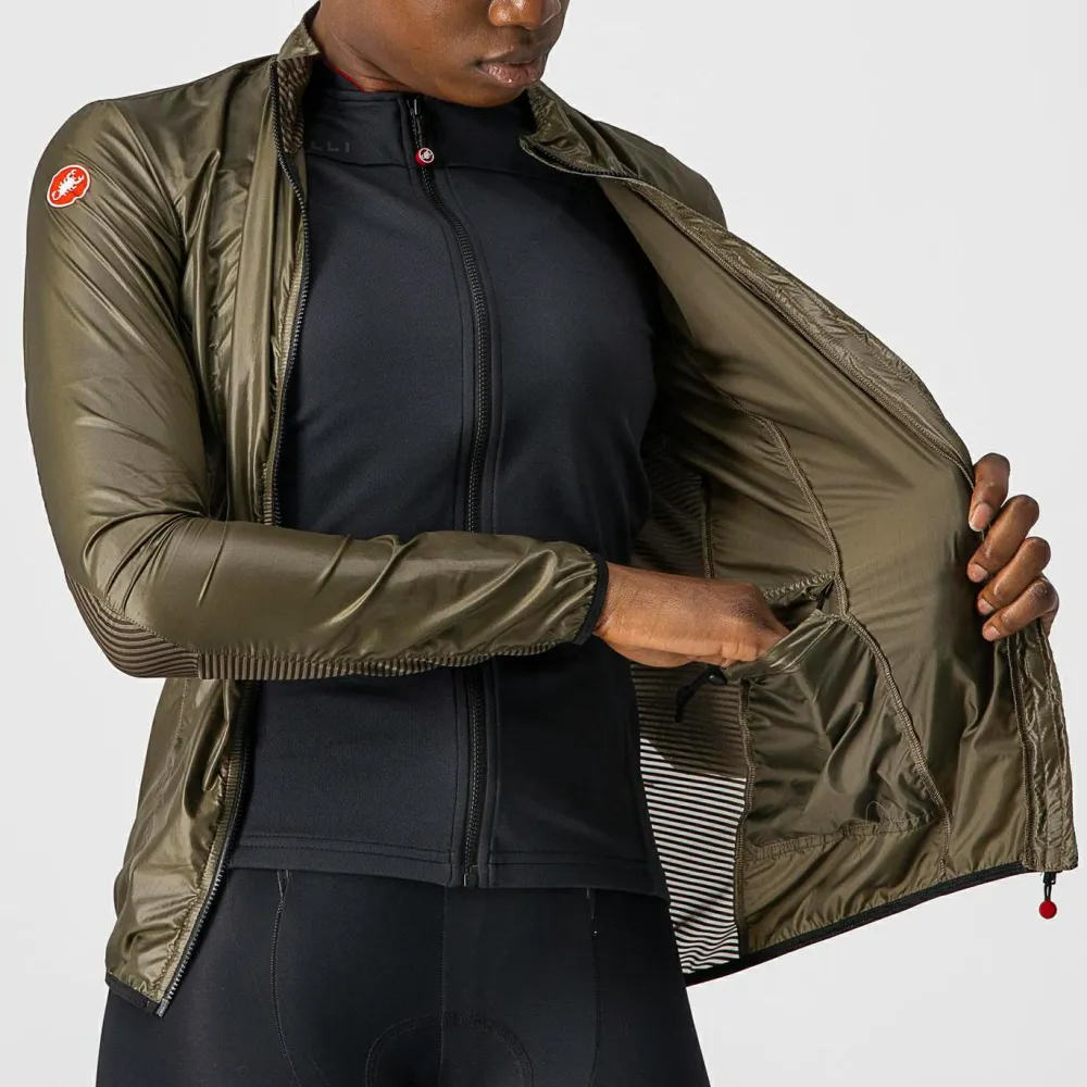 Die Women’s Aria Shell Jacket von Castelli lässt sich extrem klein zusammenpacken und wiegt dabei kaum etwas. Diese beiden Eigenschaften erlauben es, die Jacke in jedem noch so minimalistischen Radgepäck mitzunehmen und sie bei den geeigneten Bedingungen hervorzuholen. Diese sind beispielsweise eine windige Abfahrt nach einem schweißtreibenden Anstieg, wenn der Körper empfindlich ist und dennoch Schweißperlen auftreten. Dann schützen die windabweisenden Eigenschaften der Jacke vor einer unangenehmen Erkältung.