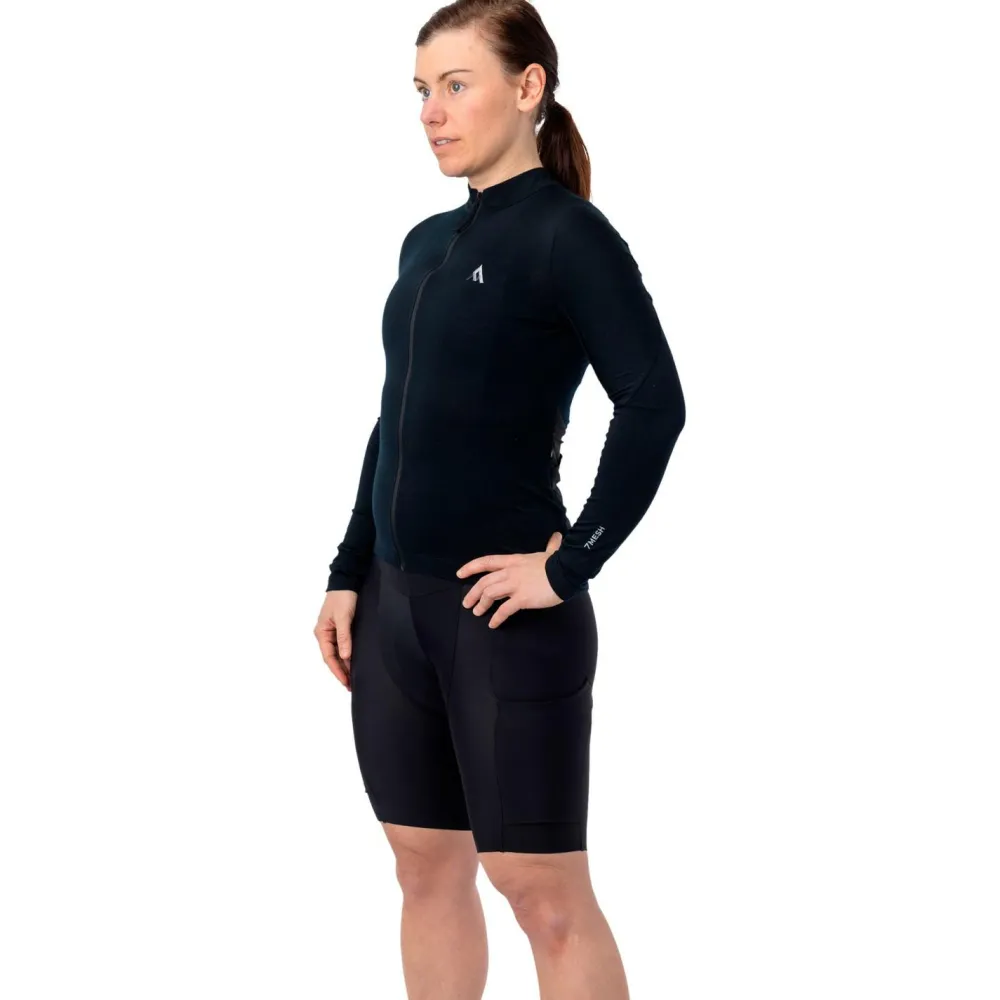 Ein sportlicher Schnitt und ein angenehmes Material, das erwartet Dich beim Women’s Ashlu Merino Jersey L/S von 7mesh. Dieses langärmelige Radtrikot begleitet Dich an kühleren Tagen und ist durch das Mischgewebe sehr angenehm zu tragen. Der körpernahe Schnitt sorgt außerdem dafür, dass das Trikot gut sitzt und auch bei höheren Geschwindigkeiten nicht flattert. Praktisch: In insgesamt fünf geräumigen Taschen bringst Du alles unter, was während der Tour nicht fehlen darf.