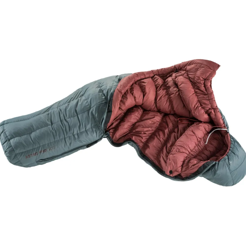 Der Schlafsack ist mit der ergonomischen SL Konstruktion designt. Die damenspezifische Passform ist an den Schultern sowie im Fußbereich etwas schmäler geschnitten und mehr isoliert. Der Mumienschnitt bietet Dir nach einem langen Wandertag viel Platz im Inneren. Sowohl der Kopfbereich als auch die ErgoFootPro Fußbox sind vorgeformt. In Kombination mit der Thermo Stretch Inside Konstruktion kannst Du Dich beim Schlafen mit dem Women’s Astro Pro 400 SL Daunenschlafsack von deuter bequem ausstrecken.