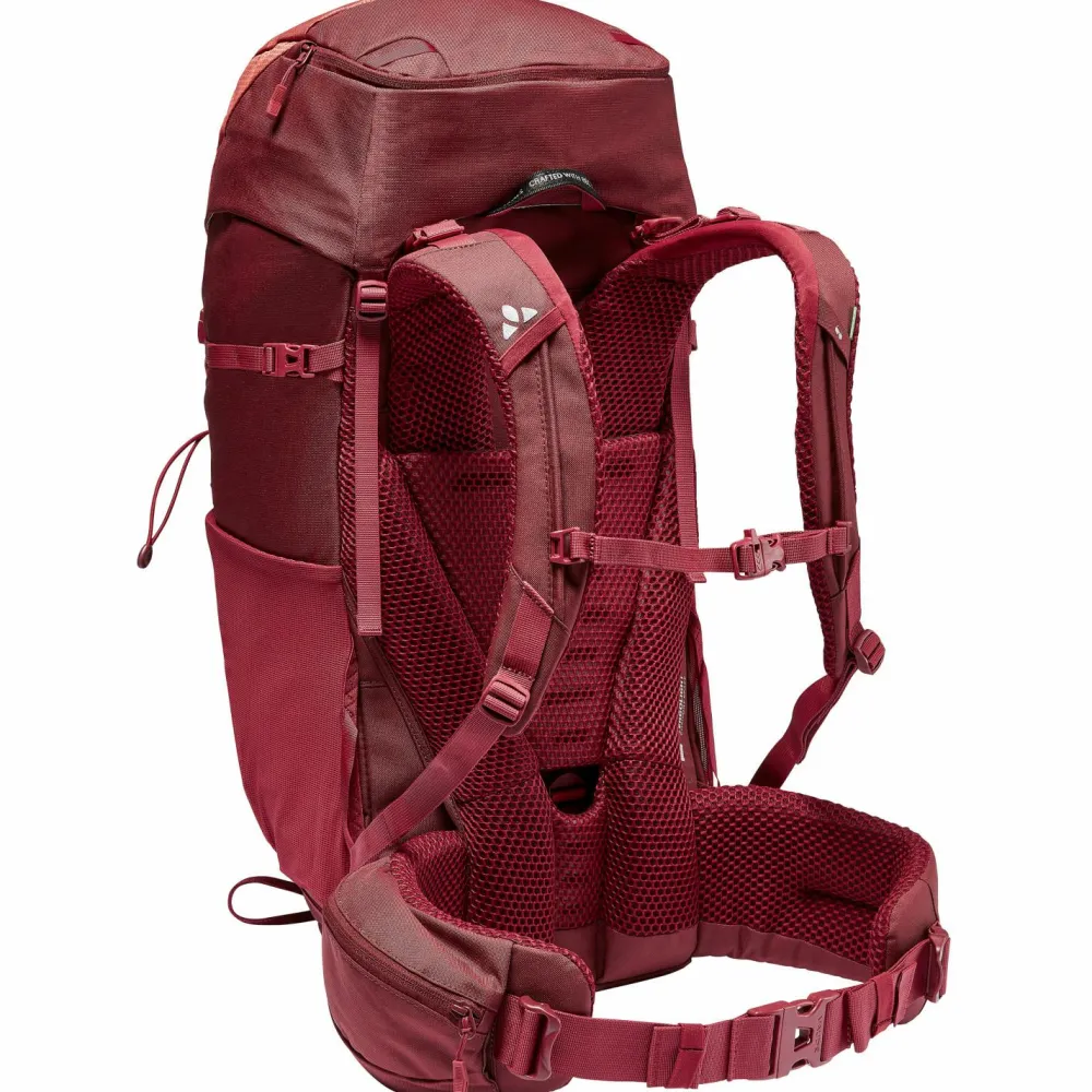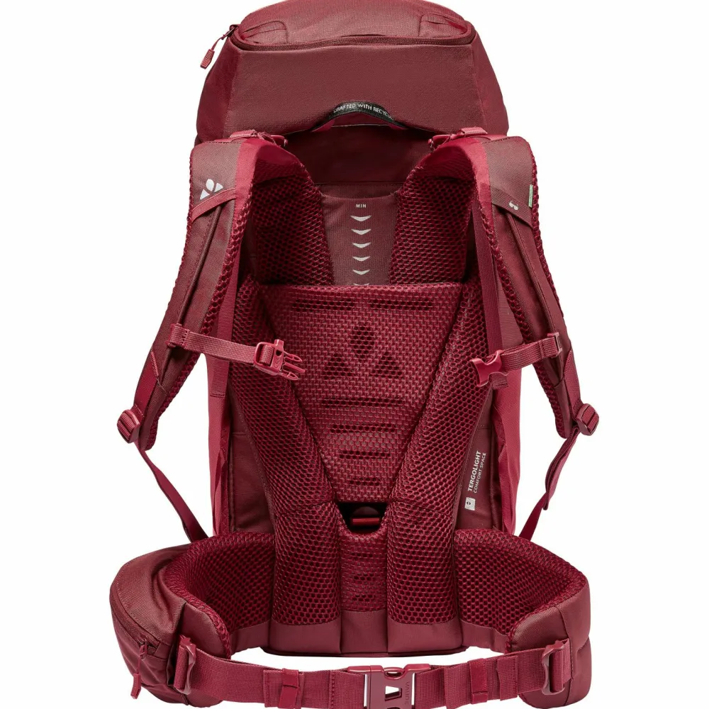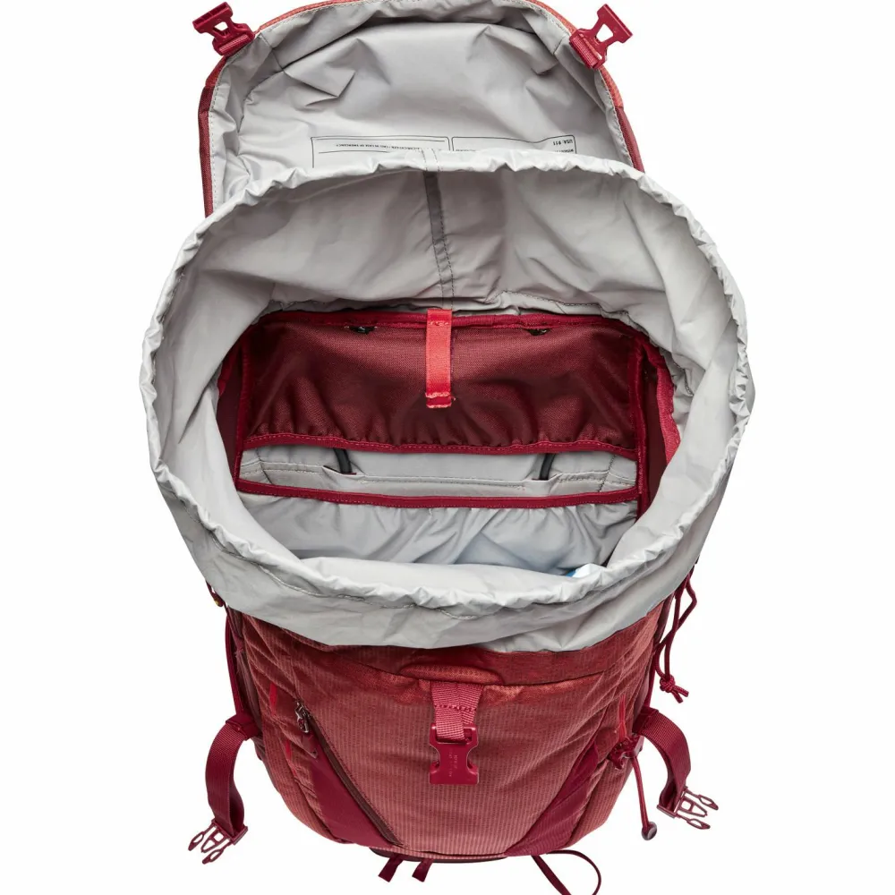 Das Material punktet mit Langlebigkeit und Nässeschutz. Viel Stauraum bietet das geräumige Hauptfach, auf das Du zweifachen Zugriff hast. Das Deckelfach lässt sich verstellen und bietet Stauraum für Kleinigkeiten. Die Trekkingstöcke kannst Du sicher am Rucksack befestigen. Praktisch ist das Infopanel für alpine Notfälle. Kompressionsgurte verhindern Instabilität. Besonders komfortabel ist der individuell einstellbare Rücken. Dank Comfort Space wird der untere Rückenbereich optimal entlastet. Die Schultergurte sind an die Anatomie kleinerer Personen angepasst. Der Hüftgurt übernimmt zuverlässig die Last. Ein zuverlässiger Partner für Trekkingtouren!
