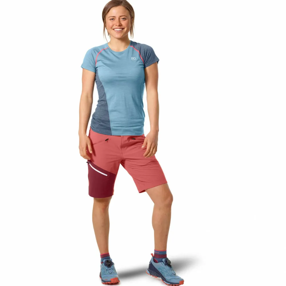 Strapazierfähig, atmungsaktiv, bewegungsfreundlich – so lässt sich die Women’s Brenta Shorts von Ortovox in drei Wörtern beschreiben. Die Trekkinghose ist allerdings so herausragend, dass es viel zu schade wäre, wenn wir es bei den drei Wörtern belassen. Denn die Shorts ist speziell für anspruchsvolle Bergtouren konzipiert, was sie dem widerstandsfähigen Materialmix zu verdanken hat. Die Materialkombination besteht im sogenannten Martindale-Test, der die Abriebfestigkeit misst, über 100.000 Scheuerzyklen und gehört damit zu einem der widerstandsfähigsten Stoffe von Ortovox. Zudem erlangt sie durch den schmalen Schnitt und dem sehr elastischen Material eine ideale Passform mit ausreichend Bewegungsfreiheit in jeder Situation, während die Merino-Mesheinsätze im Bundbereich für einen hohen Tragekomfort sorgen. Wer also das nächste Abenteuer sucht, findet es definitiv mit der Women’s Brenta Shorts!