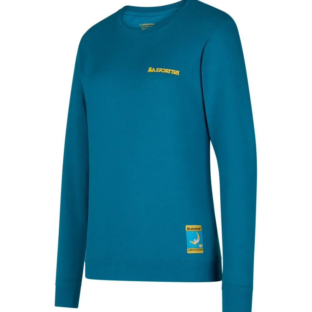Für alle, die gerne am Fels und in der Halle in der Vertikalen unterwegs sind: das Women’s Climbing On The Moon Sweatshirt von La Sportiva! Das Longsleeve aus weicher Baumwolle trägt sich angenehm auf der Haut und scheut den Felskontakt nicht. Das abriebfeste Material ist rundum pflegeleicht und glänzt durch den hübschen Print am Rücken!