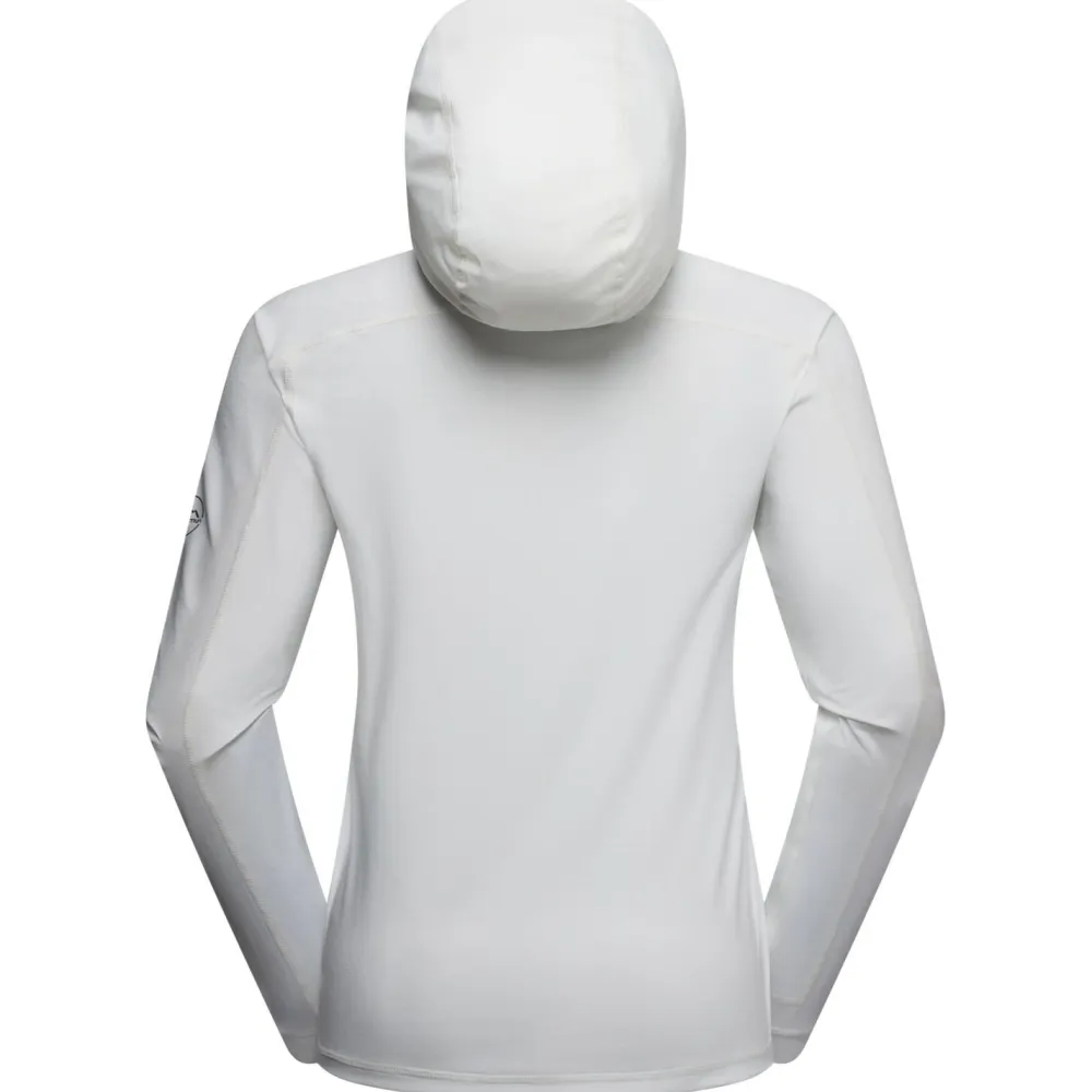 Der leichte und atmungsaktive Women’s Cloud Shadow Sun Hoody von La Sportiva liefert mit UV-Schutzfaktor 50+ kühlen Schutz an sonnenreichen Outdoor-Tagen! Dieser vielseitige Hoodie vereint beim Wandern, Klettern oder an langen Tagen in der Natur effektiven Schutz mit voller Bewegungsfreiheit. Dazu tragen auch durchdachte Details wie integrierte Daumenlöcher und eine helmtaugliche Kapuze mit Pferdeschwanzöffnung bei. Optimiert wird das Ganze durch die HeiQ-Mint-Behandlung, die immer für ein angenehmes Frischegefühl sorgt.