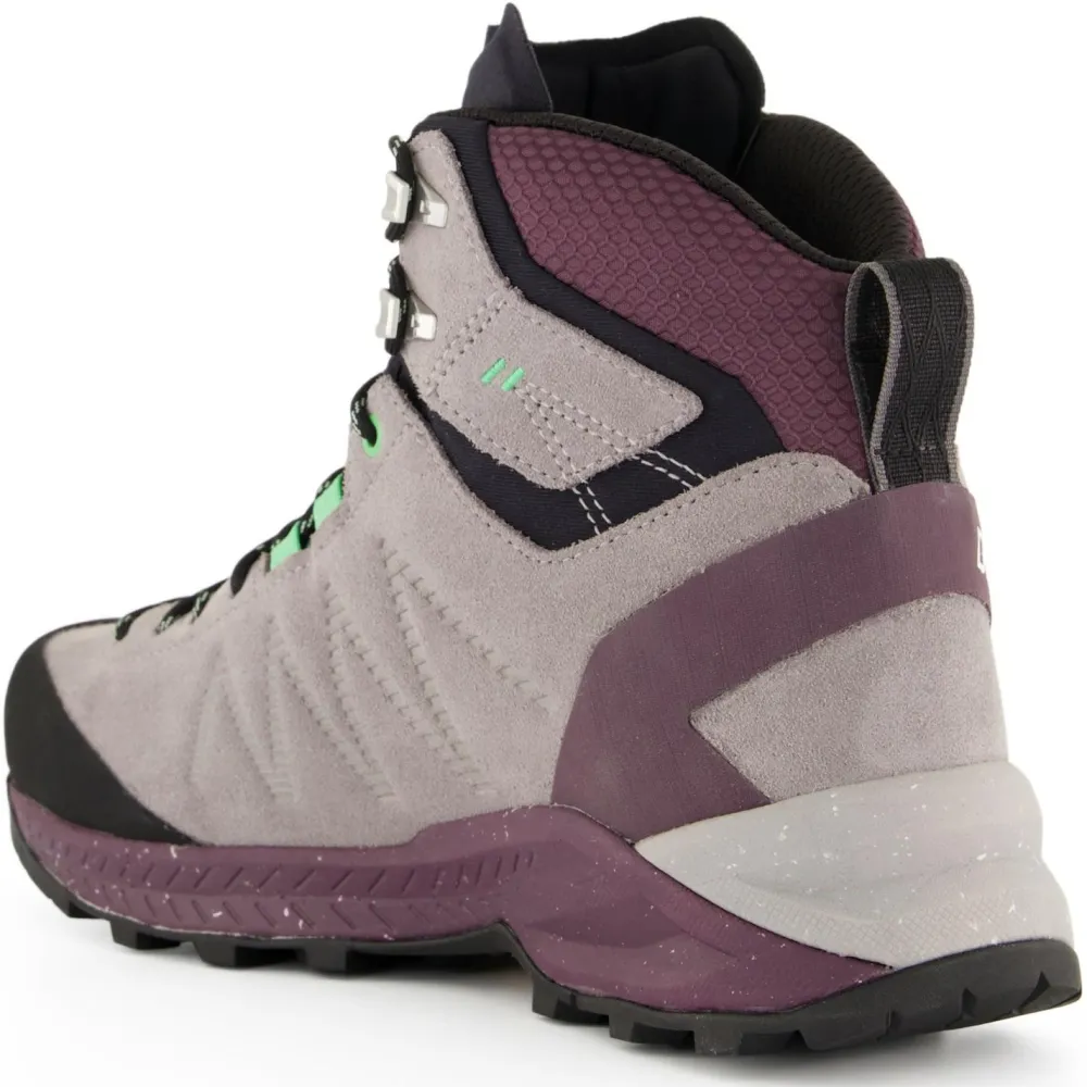 Die Vibram XS-Trek Laufsohle mit ihren ausgeprägten Stollen sorgt für ausgezeichnete Traktion, sowohl beim Abstieg als auch beim Anstieg. Die Ferse ist mit weichem EVA ausgestattet, das eine hervorragende Dämpfung bietet und Stöße effektiv absorbiert. Der vordere Bereich ist besonders steif und bietet eine Kletterzone, die Dir Präzision und Unterstützung auf anspruchsvollen Passagen garantiert.