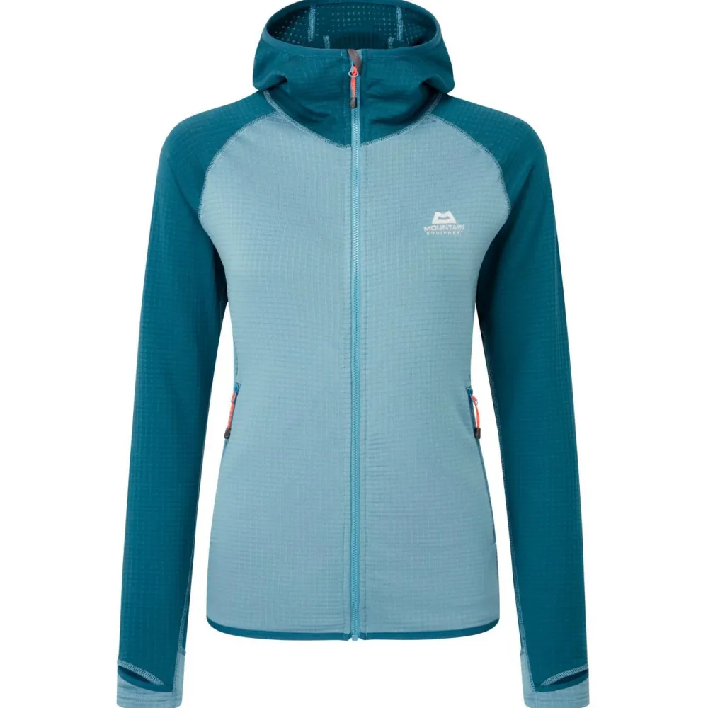 Das atmungsaktive Gewebe der Women’s Eclipse Hooded Jacket von Mountain Equipment ist mit einer geruchshemmenden Polygiene Behandlung versehen und wirkt gezielt gegen das Wachstum von geruchsbildenden Bakterien. Die Fleecejacke ist aus Pontetorto Tecnostretch gefertigt. Material und Imprägnierung sind Bluesign approved.