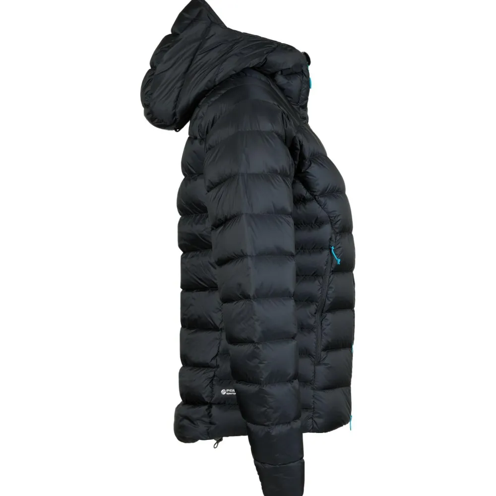 Bei Bergsport bietet die Women’s Electron Pro Jacket Daunenjacke von Rab eine exzellente Mischung aus Wärmeleistung und Wetterschutz. Sie ist aus strapazierfähigem Pertex Quantum Pro gefertigt und ist wasserdicht und windundurchlässig. Die wetterfeste PU-Beschichtung am Obermaterial wird durch eine zusätzliche DWR Behandlung ergänzt, die einen effizienten Abperleffekt von Wassertropfen und Schmutzpartikeln ermöglicht. Die isolierenden Kammern der Daunenjacke sind mit hydrophober Gänsedaune aus Europa befüllt und bieten mit 800 cuin eine hervorragende Bauschkraft und ein super Verhältnis von geringem Eigengewicht zu maximaler Isolationskraft. Für angenehme Wärme am Hals und am Kopf verfügt die Women’s Electron Pro Jacket über eine verstellbare Kapuze, die auch bestens über den Kletterhelm passt. Die Rab Jacke ist angenehm bewegungsfreundlich und verfügt über zwei hoch angesetzte Fronttaschen, die auch mit angelegtem Klettergurt optimal zu erreichen sind.