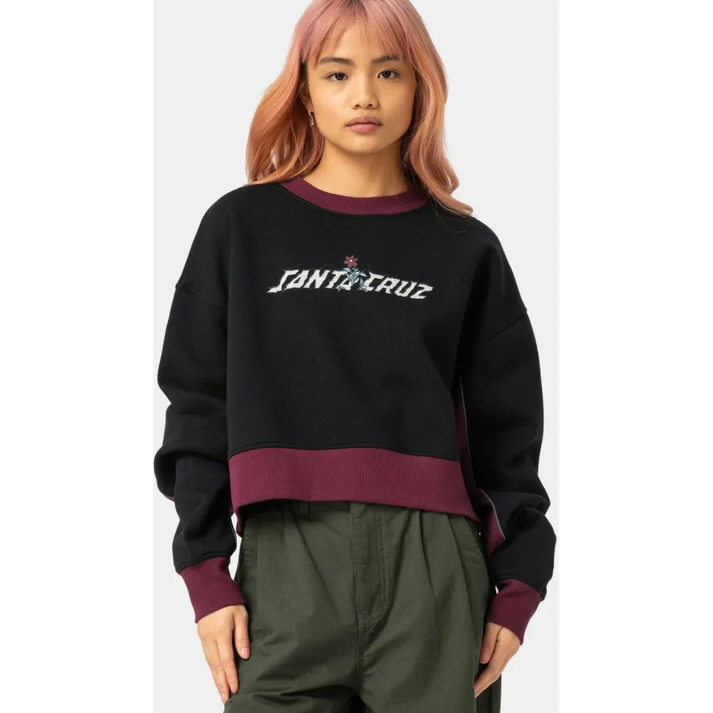 Der Women’s Flourish Strip Crew von Santa Cruz bringt frischen Wind in Deinen Kleiderschrank: Mit seinem angesagten Cropped Fit und dem gemütlichen Fleece-Material bist Du modisch und bequem unterwegs – egal, ob beim Stadtbummel oder Chillen mit Freunden. Stilvolle Details wie der Rundhalsausschnitt und der charakteristische Frontprint machen den Pullover zu einem echten Hingucker.