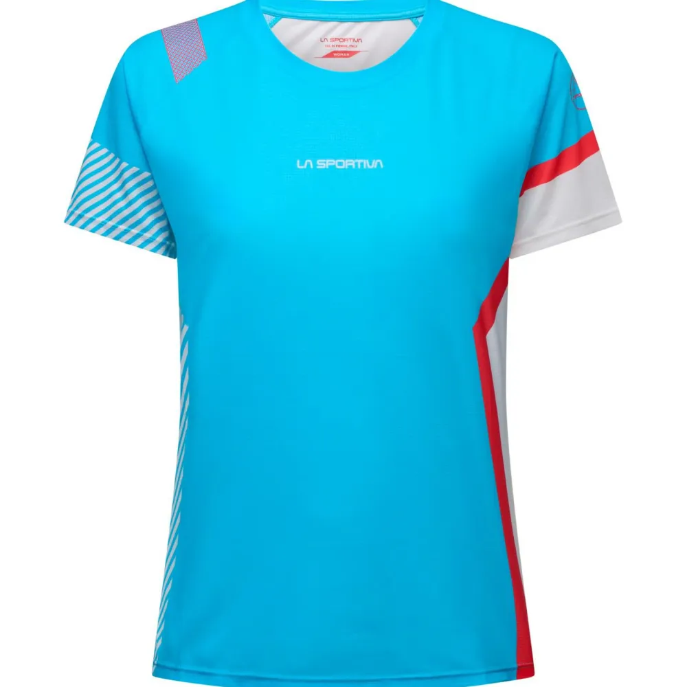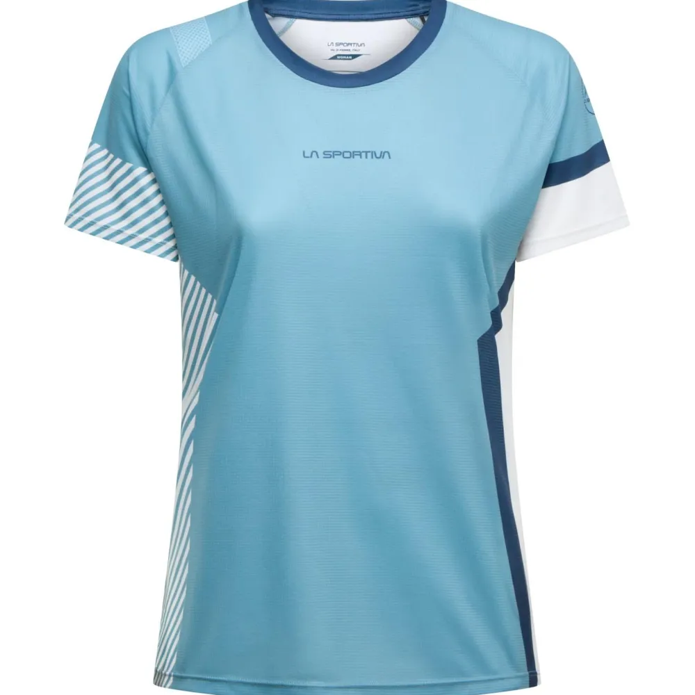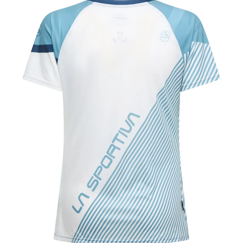 Das Women’s Flow T-Shirt von La Sportiva besteht aus vollständig recyceltem Polyester und ist besonders für lange Trailrunning-Sessions geeignet. Das leichte, atmungsaktive Material dieses Laufshirts fühlt sich angenehm auf der Haut an und scheuert nicht. Hinzu kommt die geruchshemmende Polygiene-Behandlung, die sich selbst nach schweißtreibenden Etappen noch frisch anfühlt. Die Raglan-Ärmel erhöhen die Bewegungsfreiheit bei intensiven Bergaufpassagen. Damit ist das Flow Laufshirt sehr ausdauernd und vielseitig unterwegs!