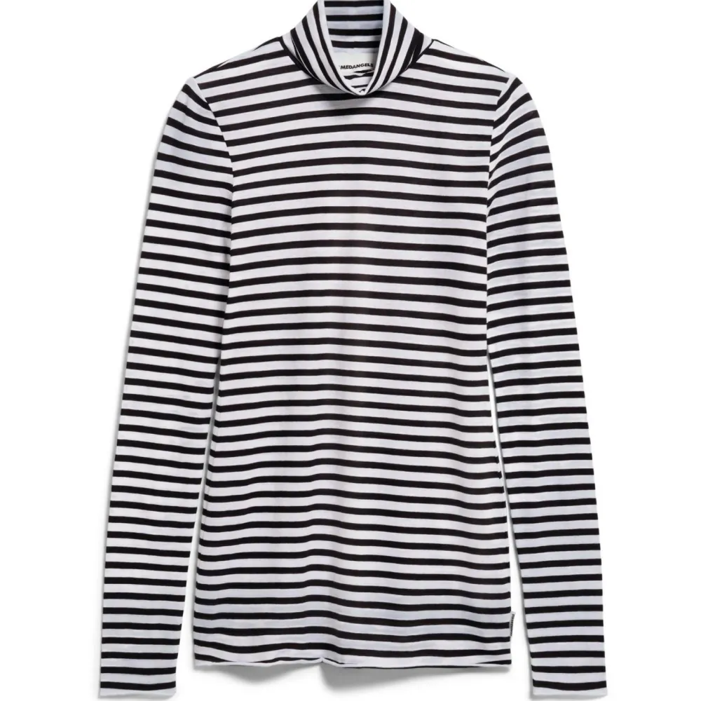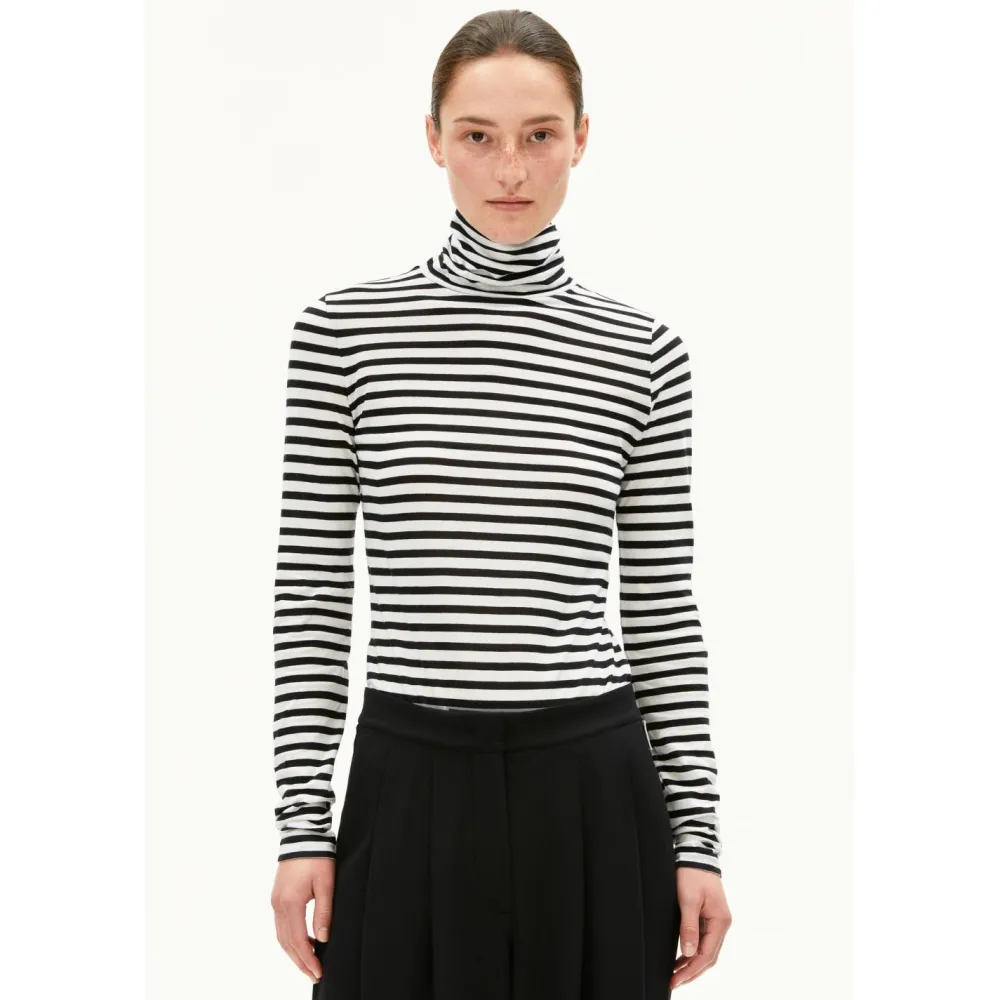 Lässig, bequem und für zahlreiche Gelegenheiten bestens geeignet, das ist das Women’s Grazilianaa Stripes von ARMEDANGELS. Dieses Longsleeve mit lässigem Streifenmuster ergänzt Deine Garderobe vor allem an kühleren Tagen. Durch den nahezu geraden Schnitt ist es dabei sehr angenehm zu tragen und behindert Dich in Deiner Bewegungsfreiheit nicht. Angenehm ist dabei auch der hochgezogene Kragen, der Deinen Hals vor Kälte schützt.