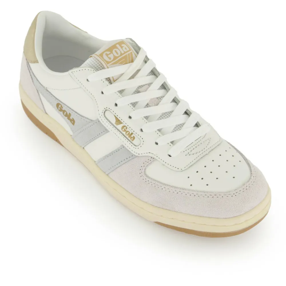 Das Modell Women’s Hawk der britischen Kult-Marke Gola ist ein Klassiker. Diese Old-School-Sneaker begleiten Dich überallhin. Zum Yoga, in den Hörsaal oder ins Office. Sie versprühen nicht nur einen Hauch von Wimbledon und 80er-Jahre-Sportbekleidung. Sie zeichnen sich darüber hinaus durch eine langlebige Materialkombination aus Leder, Wildleder und Mesh sowie eine hochwertige Verarbeitung aus. Die robuste Gummi-Sohle schützt Deine Füße zusätzlich vor Steinen und Feuchtigkeit. Die Retro-Treter halten einiges aus und sind auch noch im Used-Look stylisch. Mit den Hawks übersetzt Gola geschickt 80s-Sportswear-Vibes in zeitloses Design.