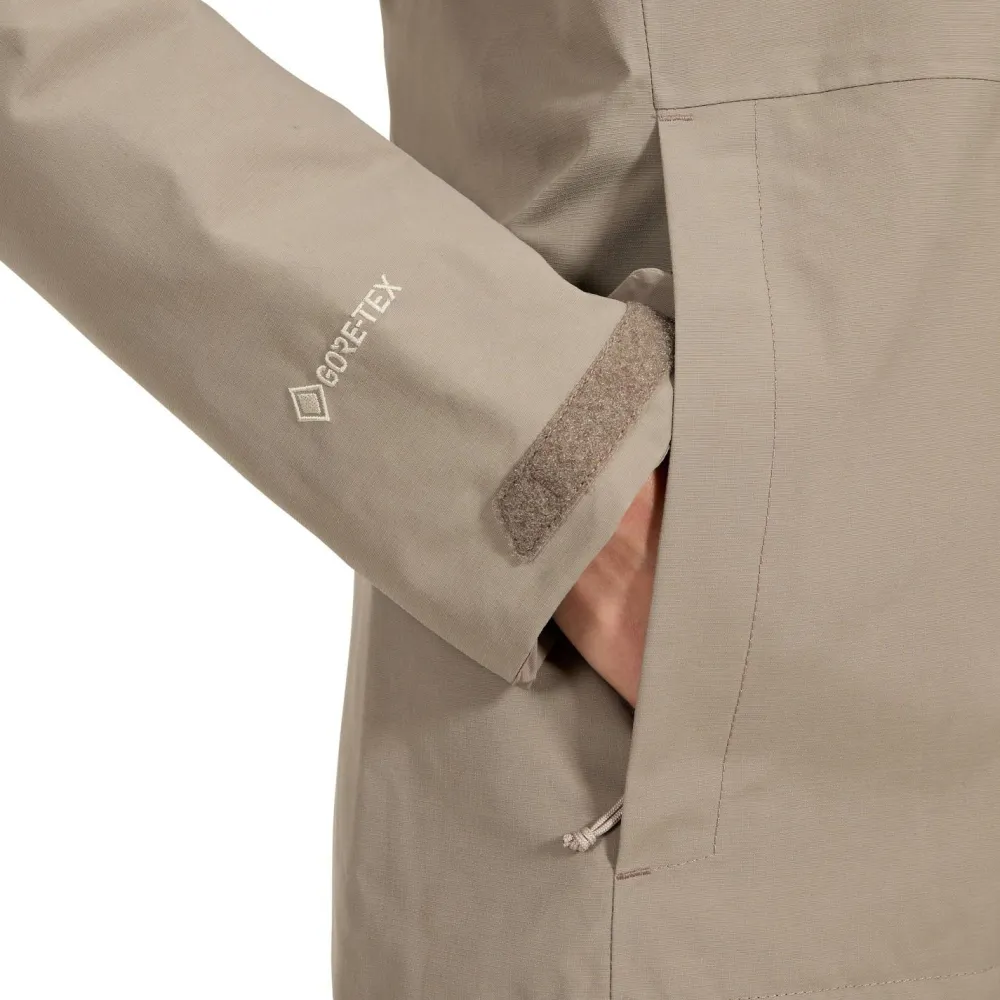 Mit der Women`s Hillwalker 2.0 Jacket von Berghaus bist Du bestens gerüstet für Deine Touren – egal, ob es nieselt, stürmt oder einfach nur zugig und frisch ist. Das 2-lagige GORE-TEX ePE-Material hält Dich zuverlässig trocken und sorgt gleichzeitig für angenehme Atmungsaktivität. Die doppelte Sturmklappe am Frontreißverschluss schützt Dich zusätzlich vor eindringender Nässe und kaltem Wind, während die einrollbare Kapuze flexibel anpassbar ist und bei Bedarf sicher verstaut werden kann. Dank der doppelten Saumanpassung sitzt die Jacke genau so, wie Du es brauchst – und hält Wind und Wetter draußen.