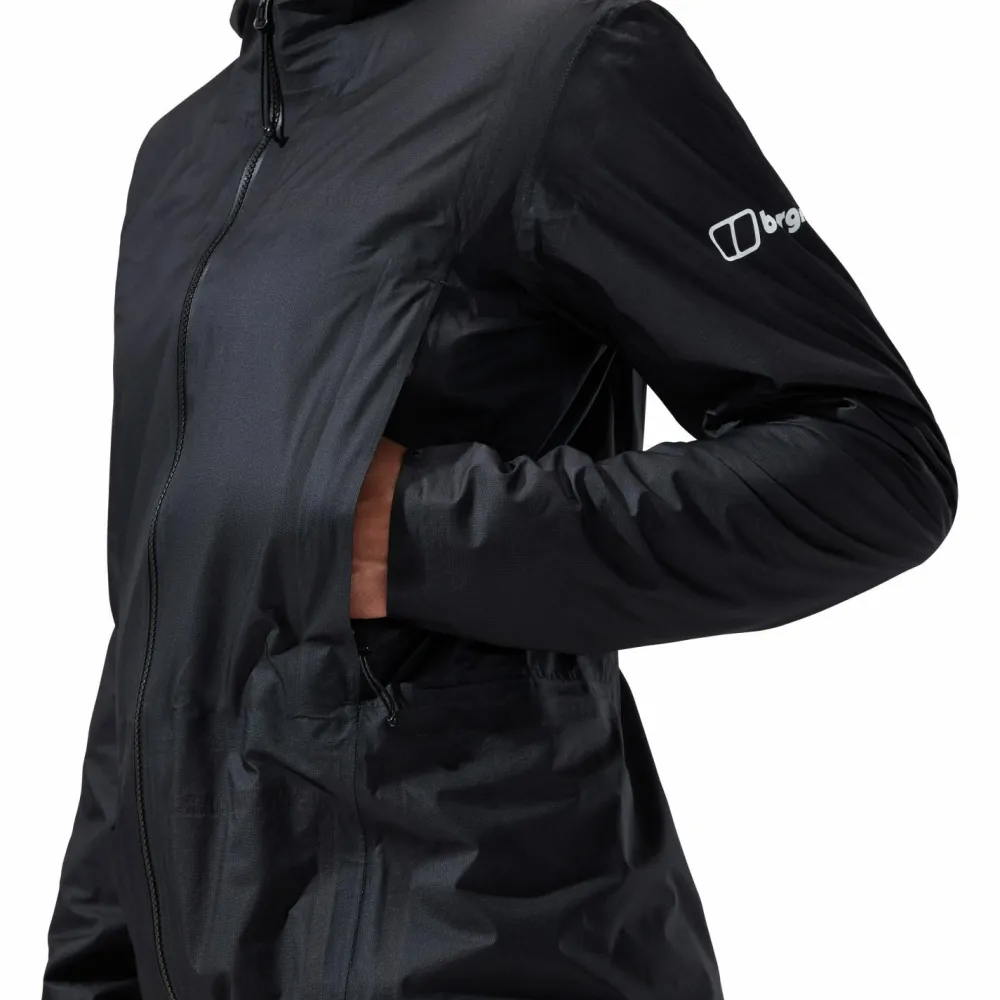 Die Women’s MTN Guide Hyper Alpha Jacket Regenjacke von Berghaus punktet beim sportlichen Einsatz mit ihrem extrem geringen Gewicht und einer ganzen Menge funktionaler Eigenschaften. Für den Transport lässt sie sich auf ein Minimum ihrer Größe komprimieren und ist einfach im Rucksack zu verstauen. Rückt schlechtes Wetter an, ist die Jacke bereit Dir dabei zu helfen trocken zu bleiben und Regen in die Schranken zu weisen. Auch Wind hat keine Chance, sich einen Weg ins Innere der Jacke zu bahnen. Damit der Kopfbereich geschützt bleibt, ist die Jacke mit einer Kapuze versehen.