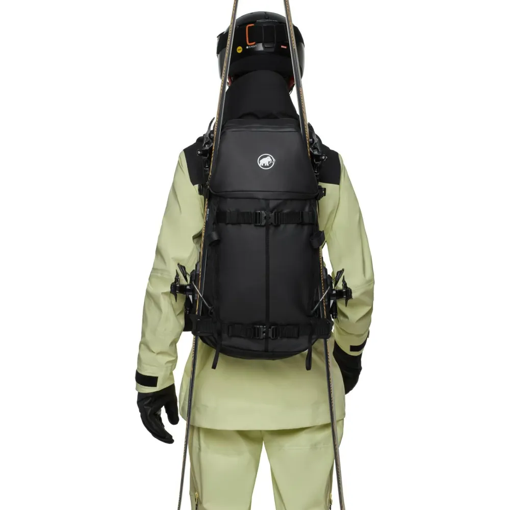 Der Women’s Nirvana 35 Skitourenrucksack von Mammut ist bereit für tiefen Pulverschnee. Mit seinem Rückenzugriff kannst Du auf alle transportierten Gegenstände direkt zugreifen, was ein enorm komfortables Organisieren des Rucksackinhalts ermöglicht. Wenn es eine schwere und steile Passage zu überwinden gilt, können Skier oder Snowboard kurzerhand am Rucksack befestigt werden und Du legst die nicht befahrbaren Meter zu Fuß zurück.