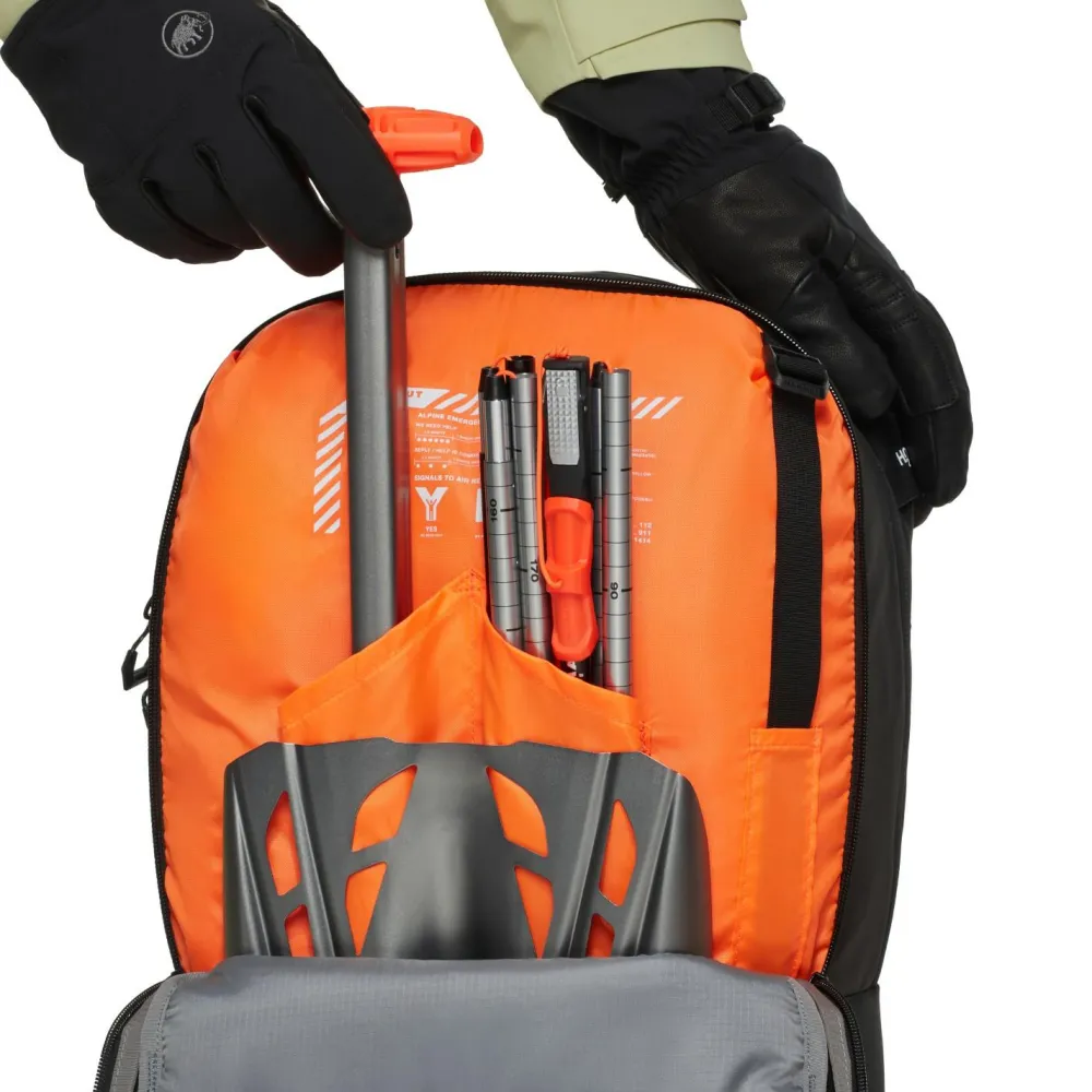 Die recyclten Fasern, aus denen der Rucksack zum Großteil gefertigt ist, setzen nicht nur ein klares Zeichen für mehr Nachhaltigkeit, sondern kümmern sich darum, dass Deine Ausrüstung trocken bleibt. Ein LVS-Fach bietet genug Platz für Schaufel und Sonde, während zudem eine Halterung für Stöcke und den Eispickel angebracht wurde. Damit Du auch während dem Laufen Flüssigkeit aufnehmen kannst, ist der Rucksack mit einem Trinksystem kompatibel. Gepolsterte Schulterträger sorgen für einen tollen Tragekomfort.