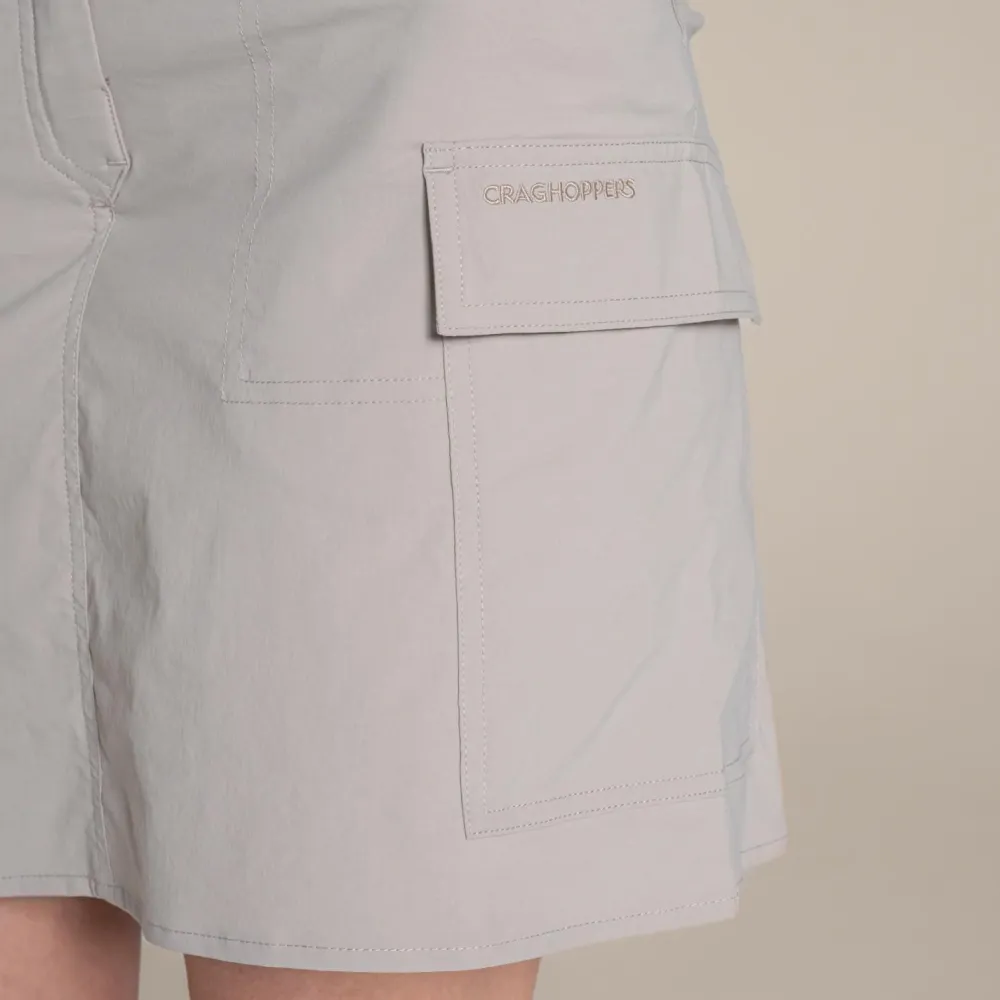 Für Wanderungen, Trekkingtouren und natürlich Reisen in südliche Gefilde ist der Women’s Nosilife Pro Cargo Skort von Craghoppers bestens geeignet. Dieser Skort ist dabei sehr angenehm zu tragen und lässt Dir eine gute Bewegungsfreiheit. Das Material ist ebenfalls angenehm zu tragen und überzeugt durch seine gute Atmungsaktivität. Darüber hinaus neigt es nicht zu vorzeitiger Geruchsbildung. Praktisch, bei Reisen mit begrenztem Gepäck. Der Skort wurde mit fünf Taschen ausgestattet und bietet Dir somit Platz für allerlei Kleinteile, die schnell zur Hand sein sollen.