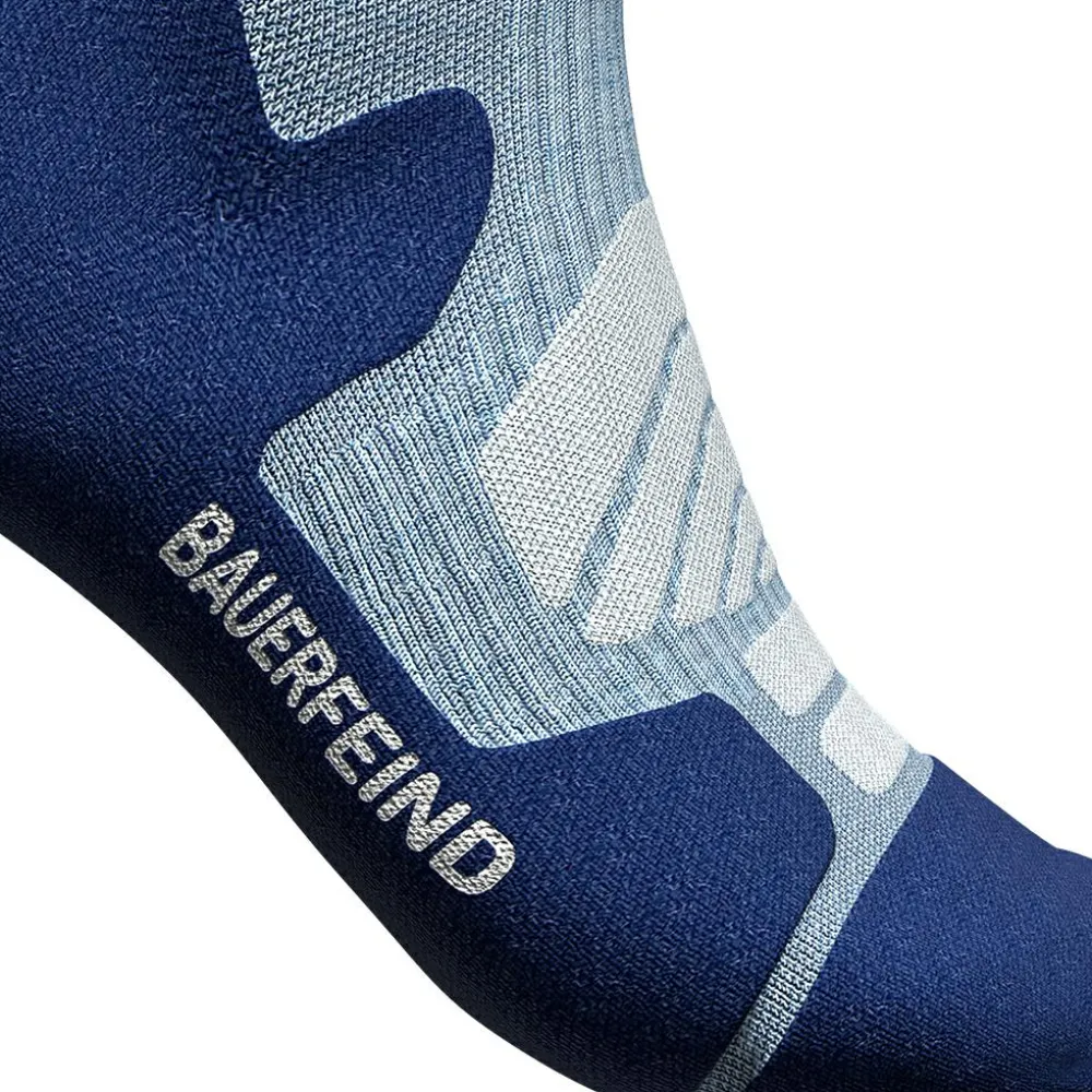 Die Bauerfeind Sports Women’s Outdoor Merino Compression Socks geben durch spezielle Kompressionszonen Power für Wanderungen auf jedem Terrain. Die gezielte Kompression fördert die Durchblutung und verbessert die Muskelökonomie. So ermüden die Waden langsamer und bleiben auf langen Touren leistungsfähiger. Der hohe Anteil an wohltuender Merinowolle bietet hervorragenden Tragekomfort: Die Naturfaser hält die Füße trocken und frisch – ein wahres Naturtalent mit Klimaregulation.