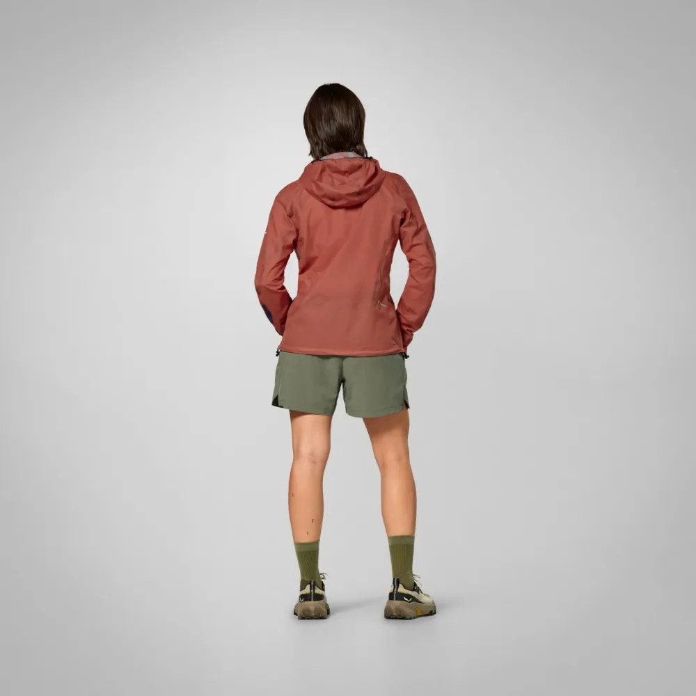 Vollständig versiegelte Nähte und eine elastische Sturmkapuze schützen Dich zuverlässig vor Wetterumschwüngen. Praktische Details wie elastische Ärmelabschlüsse, eine Brusttasche mit Reißverschluss sowie Druckknöpfe am Frontverschluss für zusätzliche Belüftung erhöhen die Funktionalität. Dank integrierter Packlösung ist die Jacke schnell und kompakt verstaut. Reflektierende Elemente sorgen für mehr Sichtbarkeit in der Dämmerung oder bei Dunkelheit. Somit wird die Women’s Pedroc 2 PTX 2.5 Light Jacket zu Deinem perfekten Begleiter auch bei stürmischem Wetter.