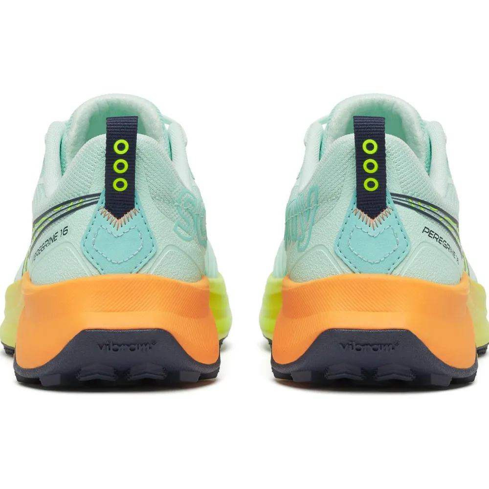 Saucony präsentiert mit dem Women’s Peregrine 16 einen Trailrunningschuh, der Dich sicher durch jedes Gelände begleitet. Die griffige Vibram Megagrip Sohle gibt Dir auf nassen Wurzeln ebenso wie auf steinigen Anstiegen festen Halt. Für zusätzlichen Schutz sorgen die integrierte Steinschutzplatte sowie die verstärkte Zehenkappe, damit unangenehme Überraschungen auf dem Trail ausbleiben. Und mit den praktischen Anziehschlaufen bist Du im Nu startklar – so bleibt mehr Zeit für das Wesentliche: Deinen Lauf.