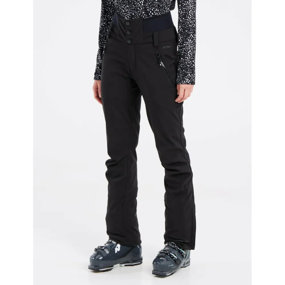 Mit ihrer Mischung aus Polyester und Elasthan bietet die Women’s Lullaby Softshell Snowpants Skihose von Protest herausragende Bewegungsfreiheit beim Skifahren und Snowboarden. Ob im Park, auf der Piste oder im Powder – die stretchy Hose macht jede sportliche Bewegung mühelos mit. Darüber hinaus schützt die Hose mit 10000 mm Wassersäule vor Schnee und Nässe.