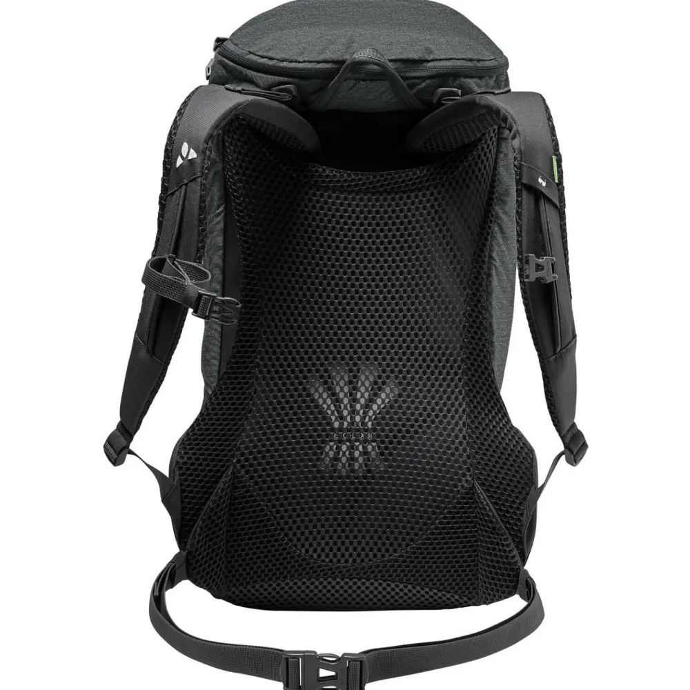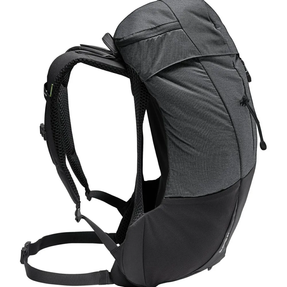 Für Tagestouren ist der Women’s Skomer 24 von Vaude bestens geeignet. Dieser Wanderrucksack überzeugt dabei durch den guten Tragekomfort sowie mehrere praktische Extras. Mit seinem vergleichsweise kurzen Rücken und speziell ergonomisch geformten Schultergurten ist er vor allem für Personen mit einem kurzen Oberkörper geeignet. Der Rücken ist bei diesem Modell gut belüftet, sodass entstehende Feuchtigkeit zuverlässig abtransportiert werden kann. Die ergonomischen Schulterträger bieten außerdem eine optimierte Bewegungsfreiheit und liegen aufgrund ihrer Polsterung angenehm an.Mit insgesamt 22 Litern Volumen bietet der Rucksack ausreichend Stauraum für alles, was unterwegs benötigt wird. Durch mehrere kleine Fächer lässt sich der Inhalt dabei gut strukturieren und auch an eine Wanderstockhalterung wurde gedacht.